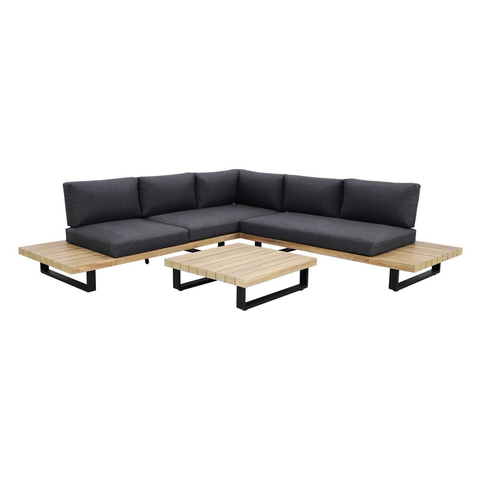 NOW'S HOME - Salon De Jardin En Bois D'acacia Et Coussins Noir 6 Places