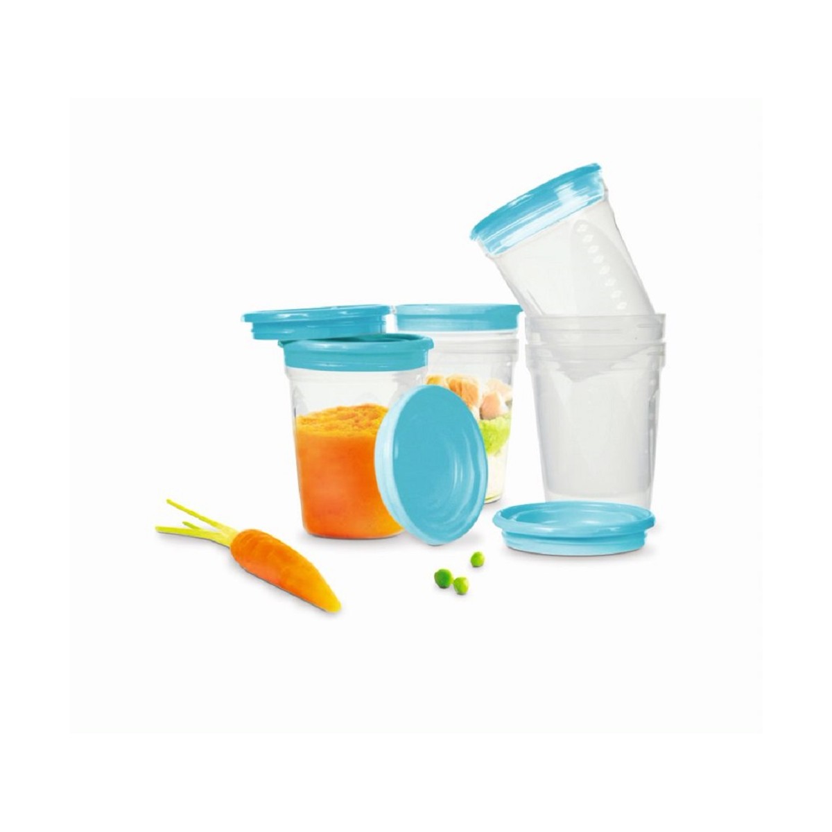 Très pratique pour congeler les petits repas de bébé. Rangement à vide facile, pots et couvercles qui s'emboîtent. Et plein ils se superposes.