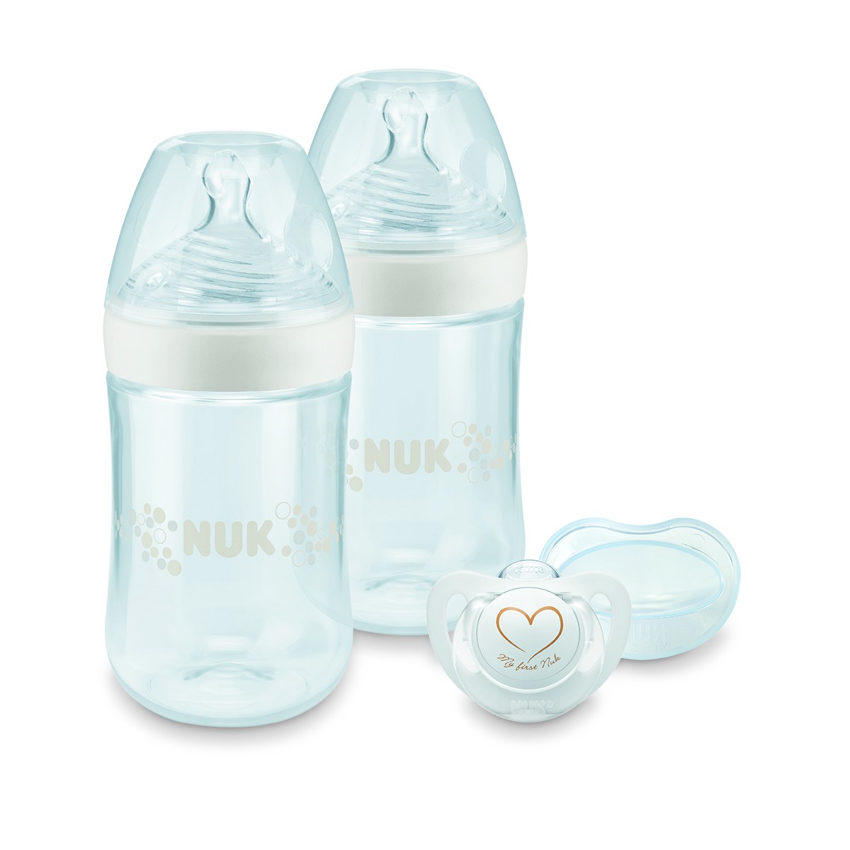 | Libellé | Nuk - Lot 2 biberons Nature Sense anti-colique + sucette Genius 0-6M |