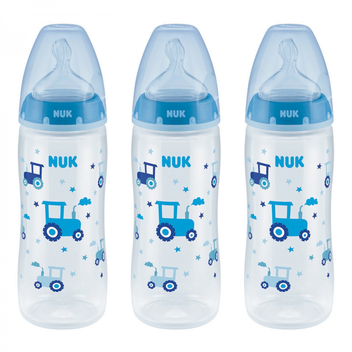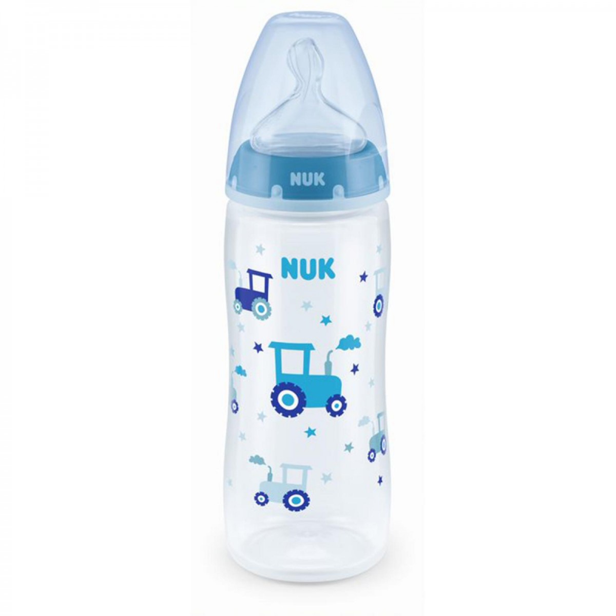 Soyez plus sûr avec Temperature Control ! Pour éviter de donner un biberon trop chaud à votre bébé, les biberons NUK sont maintenant dotés du NUK Temperature Control, un nouvel indicateur réactif à la chaleur. Situé au niveau de la graduation, il ressemble à un thermomètre et change de couleur en fonction de la température du contenu du biberon. Si le contenu est trop chaud, l'indicateur bleu passe au blanc. Il est recommandé de nourrir bébé à une température proche de celle du corps (37°C = ton bleu).