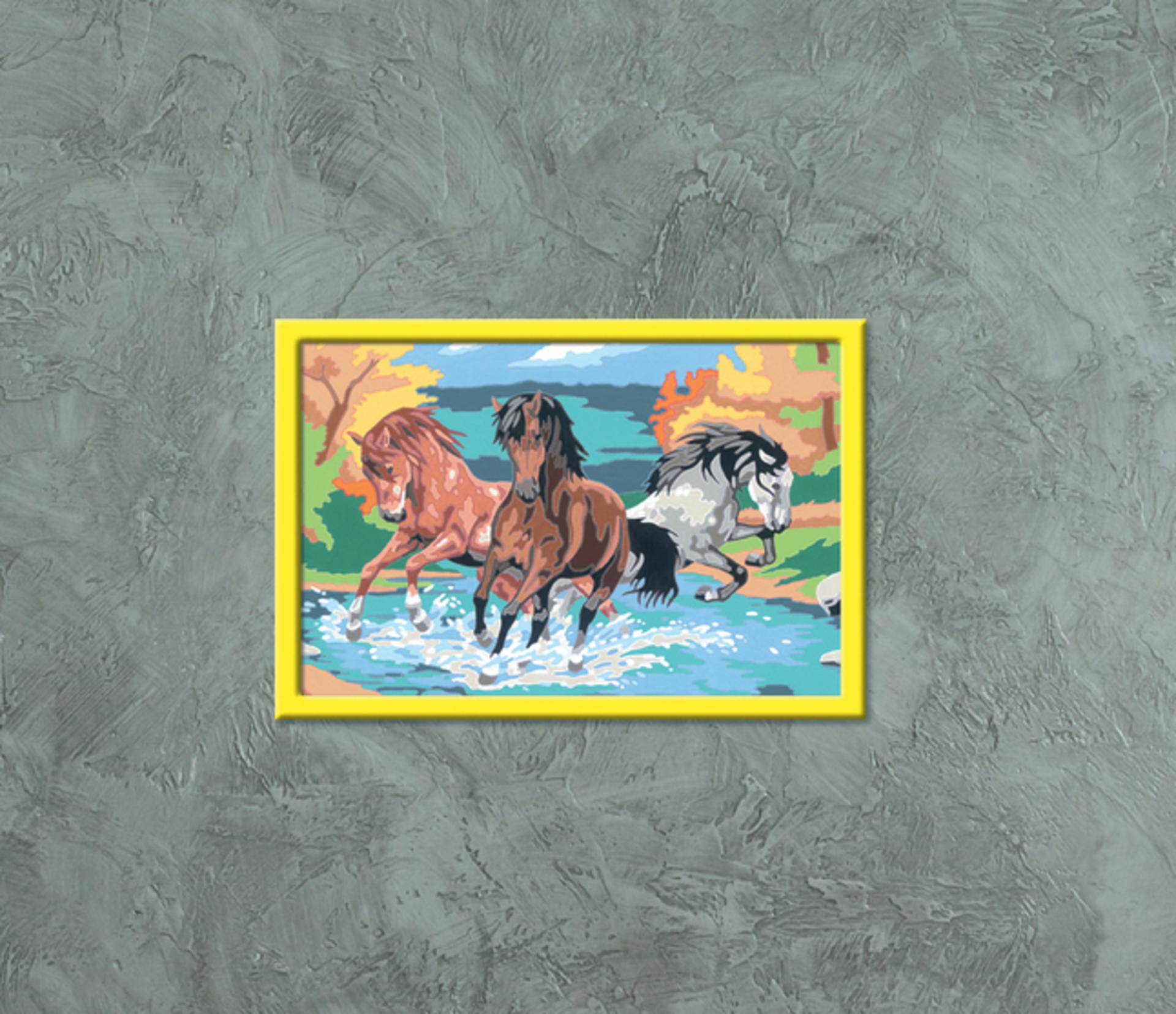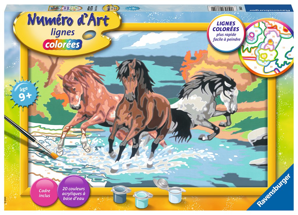 | Plus produit | ACTIVITE CREATIVE MIXTE Ce kit complet grand format permet aux filles et aux garçons de réaliser ces magnifiques chevaux galopant en pleine forêt grâce à la peinture par numéros. Dès 9 ans. FACILE, BEAU ET AMUSANT Tout le monde peut être un artiste avec la peinture par numéros, même les débutants ! Grâce aux lignes colorées pré-peintes et aux numéros associés à des couleurs, les enfants apprennent à peindre sans dépasser : résultat garanti ! PEINTURES DE QUALITE Les peintures acryliques à base deau et sans odeur ne demandent aucun mélange et sèchent rapidement. Les pots de peinture sont refermables donc réutilisables. La peinture sur les mains, ainsi que sur le pinceau, se nettoient facilement à leau. FAVORISE CONCENTRATION ET AUTONOMIE Loin des écrans, cette activité ludique allie dextérité et précision pour développer l\'habilité manuelle des enfants. Une fois fini, le tableau devient une décoration idéale ou un cadeau unique pour ses proches. KIT COMPLET pour réaliser son chef-d\'oeuvre : 1 tableau de 31x21 cm, 20 pots de peinture acrylique refermables, 1 pinceau, 1 modèle, 2 palettes support de peinture et 1 cadre. Tout est inclus pour réveiller son âme d\'artiste ! |