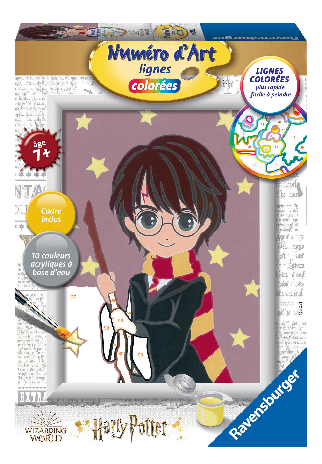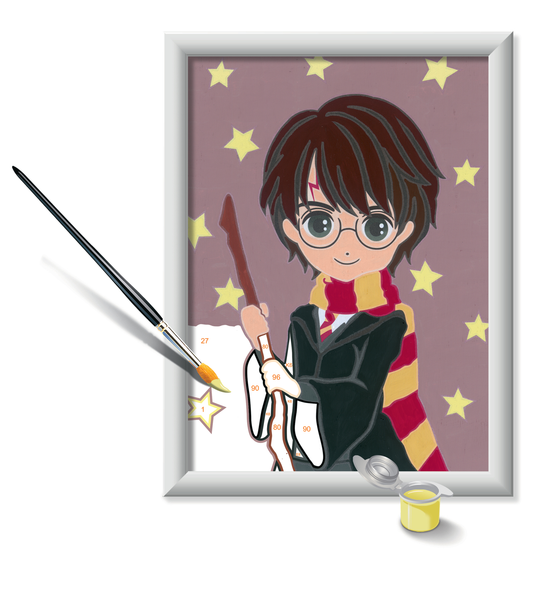 | Plus produit | ACTIVITE CREATIVE MIXTE Ce kit complet petit format permet aux filles et aux garçons de plonger dans l\'univers magique de Poudlard avec Harry Potter grâce à la peinture par numéros. Dès 7 ans. FACILE, BEAU ET AMUSANT Tout le monde peut être un artiste avec la peinture par numéros, même les débutants ! Grâce aux lignes colorées pré-peintes et aux numéros associés à des couleurs, les enfants apprennent à peindre sans dépasser : résultat garanti ! PEINTURES DE QUALITE Les peintures acryliques à base deau et sans odeur ne demandent aucun mélange et sèchent rapidement. Les pots de peinture sont refermables donc réutilisables. La peinture sur les mains, ainsi que sur le pinceau, se nettoient facilement à leau. FAVORISE CONCENTRATION ET AUTONOMIE Loin des écrans, cette activité ludique allie dextérité et précision pour développer l\'habilité manuelle des enfants. Une fois fini, le tableau devient une décoration idéale ou un cadeau unique pour ses proches. KIT COMPLET pour réaliser son chef-d\'oeuvre : 1 tableau de 13x18 cm, 10 pots de peinture acrylique refermables, 1 pinceau, 1 modèle, 1 palette support de peinture et 1 cadre. Tout est inclus pour réveiller son âme d\'artiste ! |