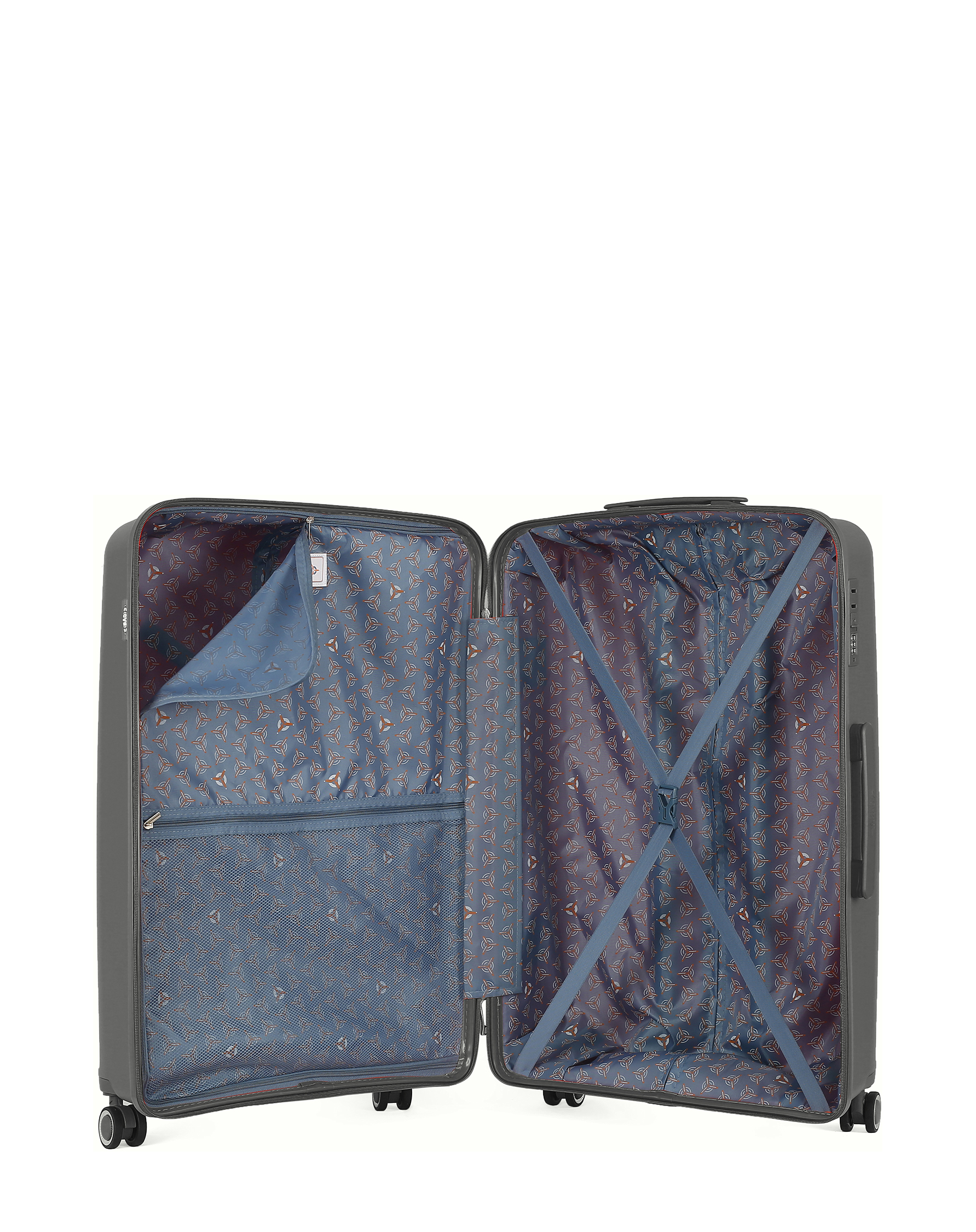 Affrontez les grands horizons avec la Valise grand format Persée d'Obago, une pièce solide en polypropylène conçue pour les voyageurs aventureux, alliant robustesse exceptionnelle et design distinctif.