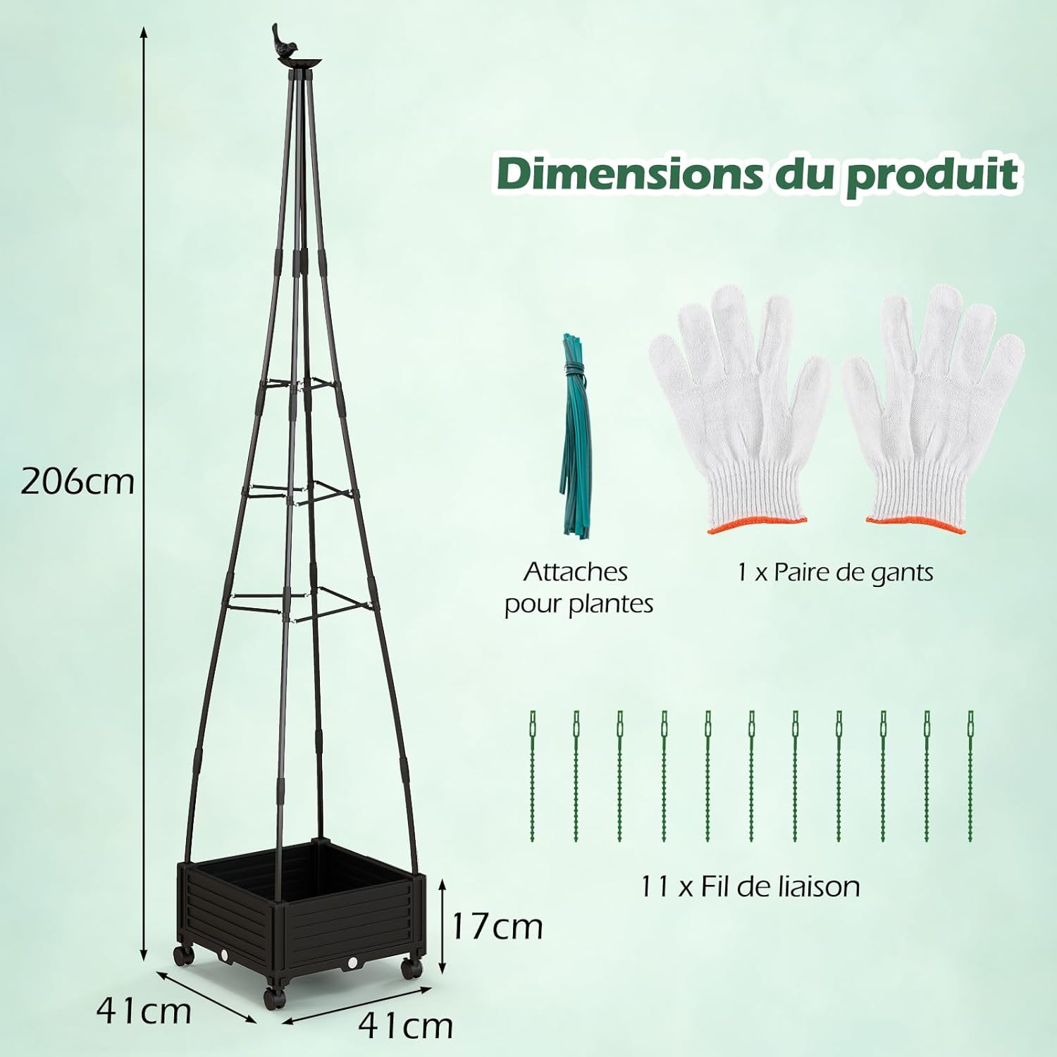 | Libellé | Obélisque de plantes grimpantes avec jardinière pot, lit de jardin surélevé avec treillis tomates 2 roues |