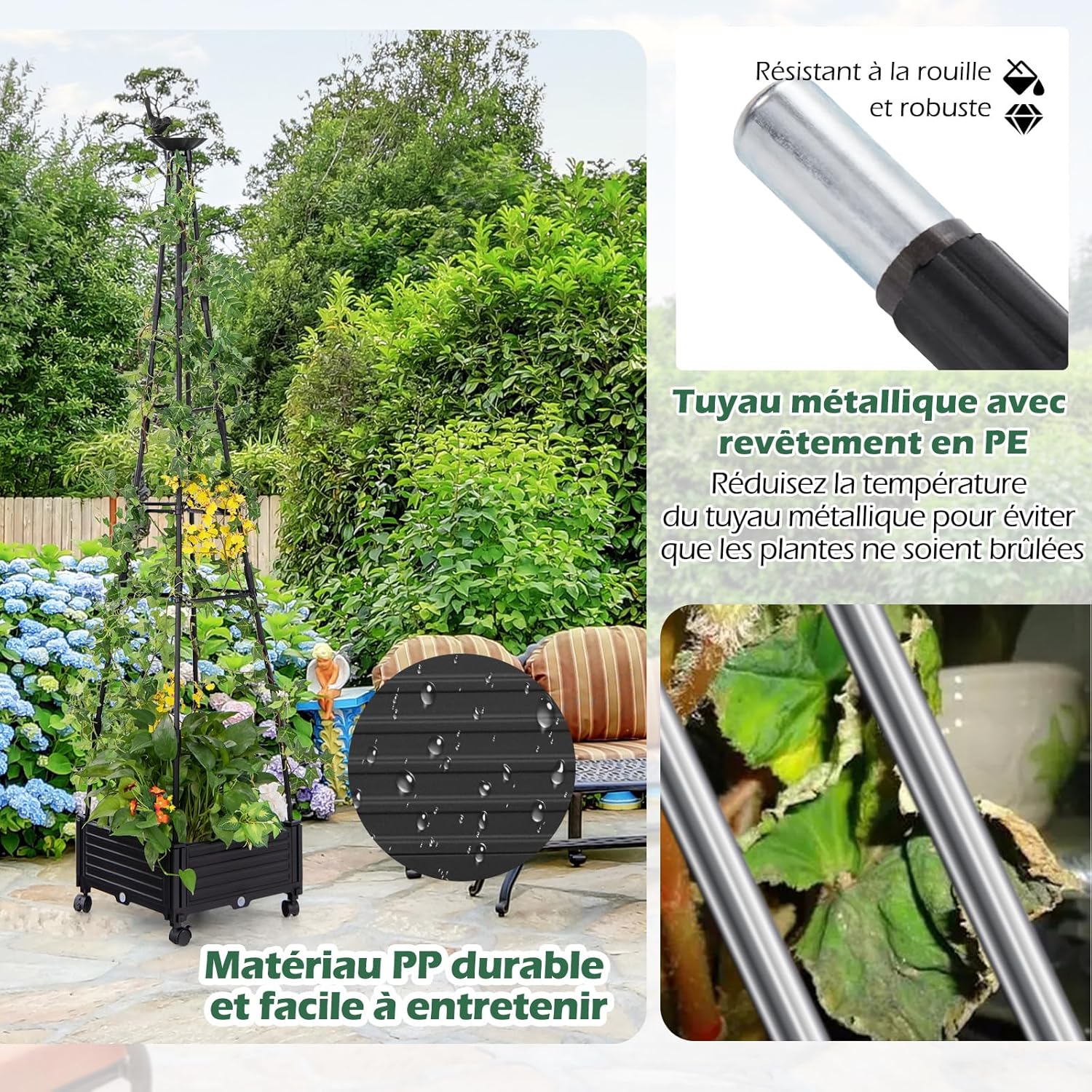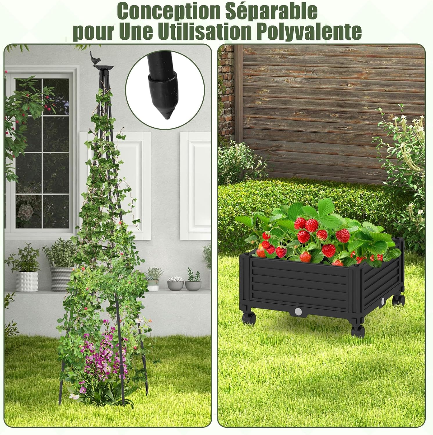 Obélisque de plantes grimpantes avec jardinière pot, lit de jardin surélevé avec treillis tomates 2 roues