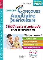 | Libellé | Objectif Concours 2020 Auxiliaire de Puériculture : 1 000 tests d'aptitude (Broché) |