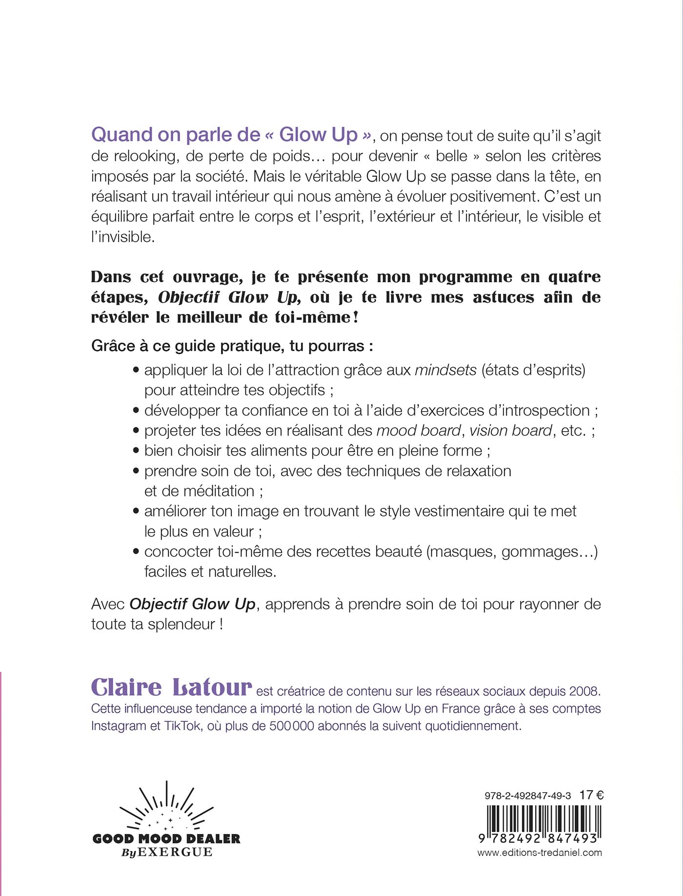 Dans cet ouvrage, je te présente mon programme en quatre étapes, Objectif Glow Up, où je te livre mes astuces afin de révéler le meilleur de toi-même !