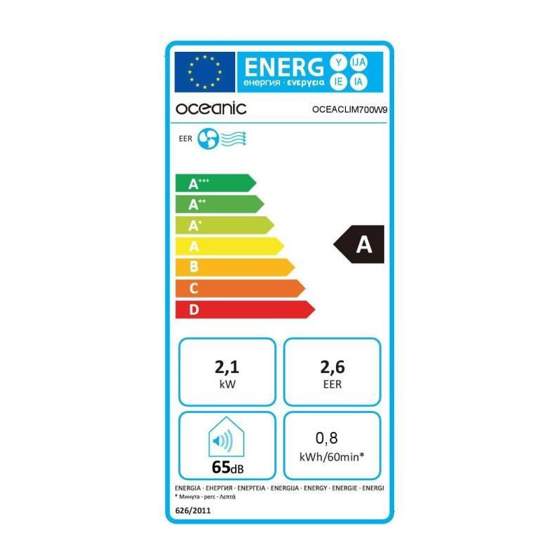 | Libellé | OCEANIC Climatiseur mobile monobloc - 2100 watts - 7000 BTU - Programmable - Classe énergétique A |