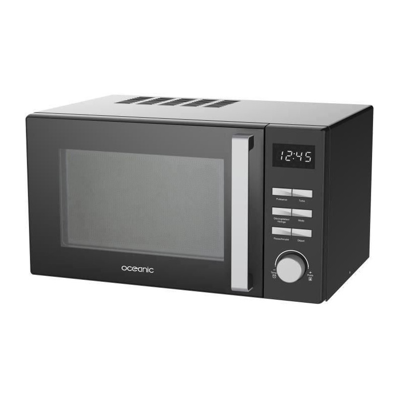 Micro ondes OCEANIC 23 litres 230 V - 50 Hz - 1280 W - Lumiere blanche - Noir - 7 programmes automatiques - Commandes électroniques et mécaniques (contrôle de minuterie)