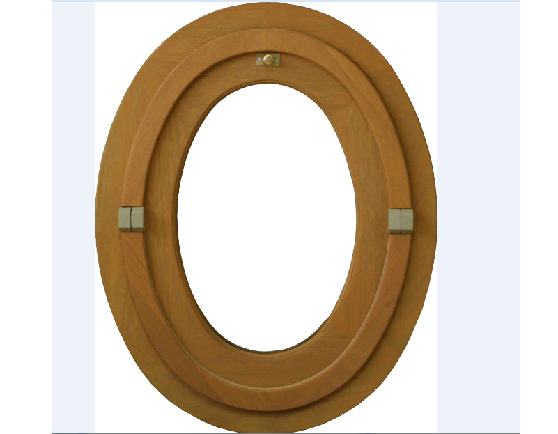 OEIL DE BOEUF OVALE H 90 X L 60 - BOIS (Côtes Tableau) côte hors tout H96 X L66 dormant de 45 x 59 mm de section - ouvrant de 45x70 mm de section - couvre-joint de 36x12 mm de section - vitrage 4/12/4 - OUVERTURE BASCULANTE