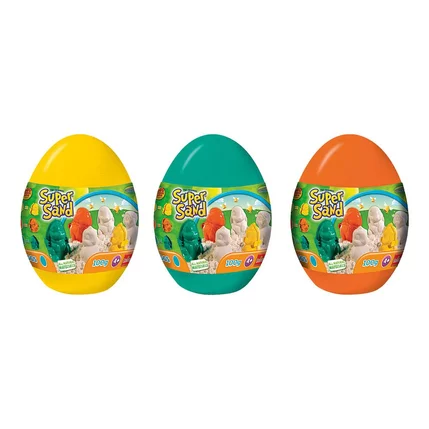 Célébrez Pâques avec les œufs Super Sand ! Chaque œuf contient un moule animal exclusif sur le thème de Pâques. Agneau, lapin ou poule, le sable inclus permettra de les modeler et de leur donner vie. Modèle selon disponibilité. Vendu à l'unité.