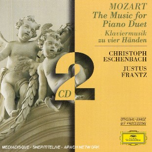 | Liste des pistes | 2.2 . sonate en fa majeur, k497 : andante - Eschenbach, Christoph,Frantz, Justus,Mozart, Wolfgang Amadeus 2.1 . sonate en fa majeur, k497 : adagio, allegro di molto - Eschenbach, Christoph,Frantz, Justus,Mozart, Wolfgang Amadeus 1.1 . sonate en ut majeur, k19d : allegro - Eschenbach, Christoph,Frantz, Justus,Mozart, Wolfgang Amadeus 1.2 . sonate en ut majeur, k19d : menuetto, trio - Eschenbach, Christoph,Frantz, Justus,Mozart, Wolfgang Amadeus 1.3 . sonate en ut majeur, k19d : rondeau, allegretto - Eschenbach, Christoph,Frantz, Justus,Mozart, Wolfgang Amadeus 1.4 . sonate en ré majeur, k381 : allegro - Eschenbach, Christoph,Frantz, Justus,Mozart, Wolfgang Amadeus 1.5 . sonate en ré majeur, k381 : andante - Eschenbach, Christoph,Frantz, Justus,Mozart, Wolfgang Amadeus 1.6 . sonate en ré majeur, k381 : allegro molto - Eschenbach, Christoph,Frantz, Justus,Mozart, Wolfgang Amadeus 1.7 . sonate en si bémol majeur, k358 : allegro - Eschenbach, Christoph,Frantz, Justus,Mozart, Wolfgang Amadeus 1.8 . sonate en si bémol majeur, k358 : adagio - Eschenbach, Christoph,Frantz, Justus,Mozart, Wolfgang Amadeus 1.9 . sonate en si bémol majeur, k358 : molto presto - Eschenbach, Christoph,Frantz, Justus,Mozart, Wolfgang Amadeus 1.10 . andante & cinq variations en sol majeur, k501 - Eschenbach, Christoph,Frantz, Justus,Mozart, Wolfgang Amadeus 1.11 . sonate en ré majeur, k448 : allegro con spirito - Eschenbach, Christoph,Frantz, Justus,Mozart, Wolfgang Amadeus 1.12 . sonate en ré majeur, k448 : andante - Eschenbach, Christoph,Frantz, Justus,Mozart, Wolfgang Amadeus 1.13 . sonate en ré majeur, k448 : molto allegro - Eschenbach, Christoph,Frantz, Justus,Mozart, Wolfgang Amadeus 2.6 . sonate en ut majeur, k521 : andante - Eschenbach, Christoph,Frantz, Justus,Mozart, Wolfgang Amadeus 2.7 . sonate en ut majeur, k521 : allegretto - Eschenbach, Christoph,Frantz, Justus,Mozart, Wolfgang Amadeus 2.8 . fantaisie en fa mineur, k608 - Eschenbach, Christoph,Frantz, Justus,Mozart, Wolfgang Amadeus 2.4 . adagio & allegro en fa mineur, k594 - Eschenbach, Christoph,Frantz, Justus,Mozart, Wolfgang Amadeus 2.3 . sonate en fa majeur, k497 : allegro - Eschenbach, Christoph,Frantz, Justus,Mozart, Wolfgang Amadeus 2.5 . sonate en ut majeur, k521 : allegro - Eschenbach, Christoph,Frantz, Justus,Mozart, Wolfgang Amadeus |