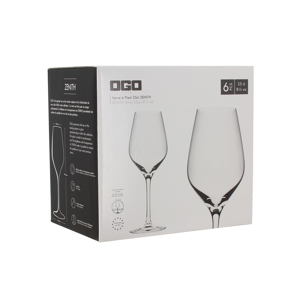 | Libellé | OGO LIVING - Boite De 6 Verres A Pied Vin Zenith En Cristallin 25 Cl |