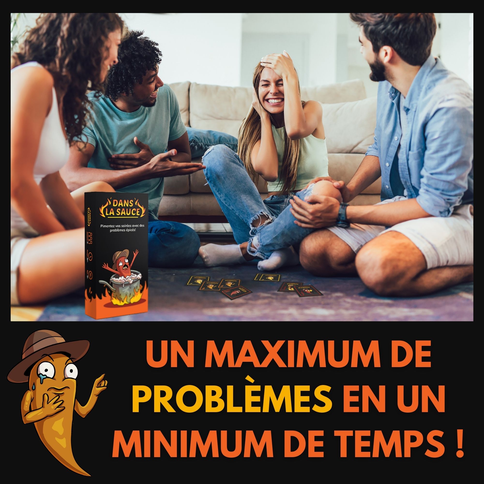 SOIRÉES EXPLOSIVES: Dites adieu aux soirées monotones ! Chaque rassemblement se transforme en événement inoubliable rempli de rires et moments forts. C'est le jeu de cartes parfait pour dynamiser vos soirées entre amis, vos fêtes et même vos apéros improvisés. RÉVÉLATIONS ET SECRETS DÉVOILÉS: Préparez-vous à des révélations-chocs et des défis inattendus. Vous pensiez connaître vos amis ? Découvrez des vérités surprenantes et des facettes cachées de chacun, le tout en vous amusant comme jamais. CRÉATEUR DE PROBLÈMES: Vous cherchez le piment dans vos soirées ? Problèmes de couple, amitiés en jeu, trahisons... Ce jeu vous pousse à révéler vos petits et grands secrets, le tout dans une ambiance électrique ACTION/VÉRITÉ NOUVELLE GÉNÉRATION: Fini les jeux d'action ou vérité classiques ! Ici, chaque carte est une bombe prête à exploser, révélant des dossiers croustillants et des secrets bien gardés. Un mélange détonant pour une soirée dont tout le monde se souviendra. L'ASSURANCE D'UNE SOIRÉE RÉUSSIE: Peu importe le contexte, "Dans la Sauce" est votre ingrédient secret pour une soirée réussie. Rires, chocs et souvenirs mémorables sont au menu. JOUABILITÉ INSTANTANÉE: Pas besoin d'être un expert en jeux de cartes ! Les règles sont simples, le jeu est rapide et tout le monde est impliqué du début à la fin. Parfait pour 4 à 8 joueurs et adapté aux plus de 16 ans.