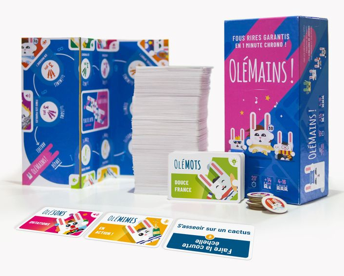 Hello les lapins ! Découvrez Olémains, le jeu drôle et bienveillant pour jouer en famille ou entre amis. 1 minute pour deviner le plus de mots possible, 9 thèmes sympathiques et déjantés, et des gages pour corser les épreuves !