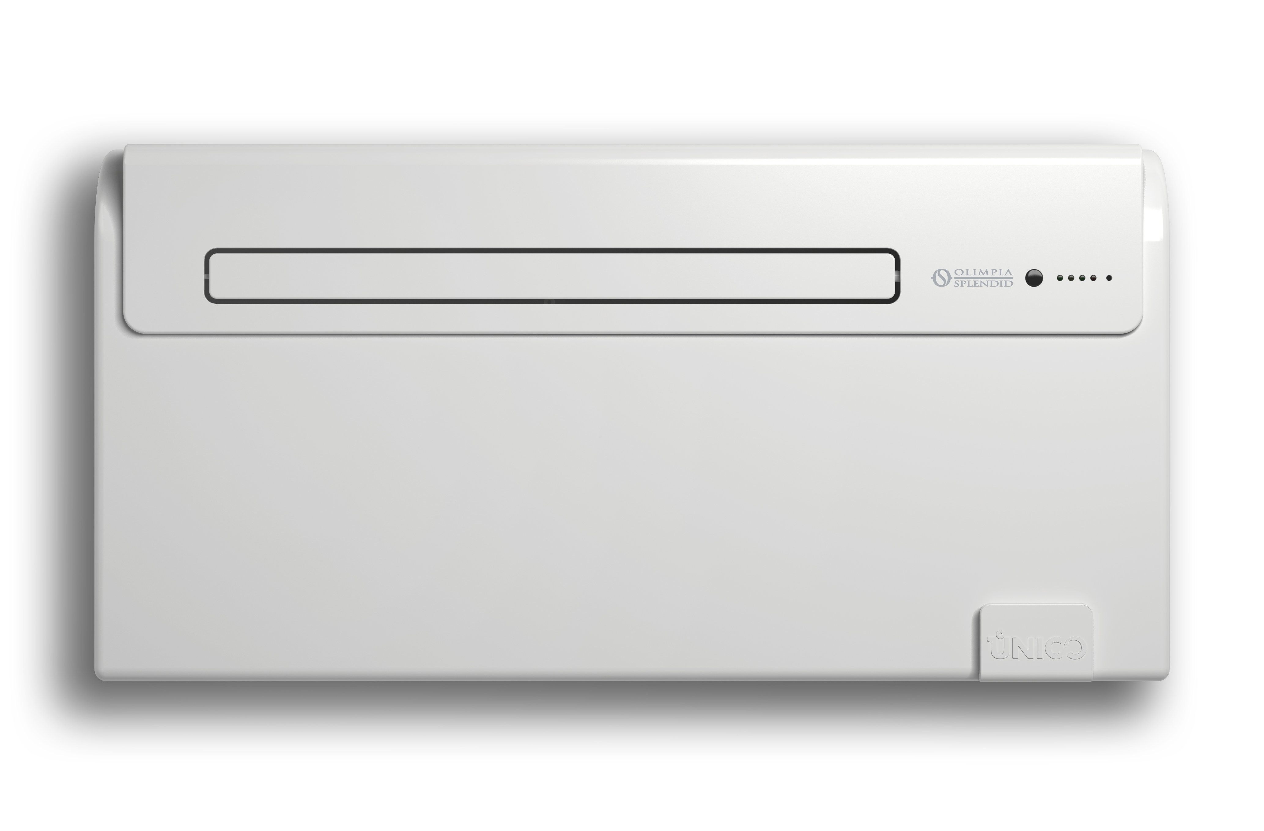 Olimpia Splendid Unico Air. Tension d'entrée AC: 230 V, Fréquence d'entrée AC: 50 Hz. Couleur du produit: Blanc. Largeur: 978 mm, Profondeur: 164 mm, Hauteur: 500 mm. Classe d'efficacité énergétique (refroidissement): A