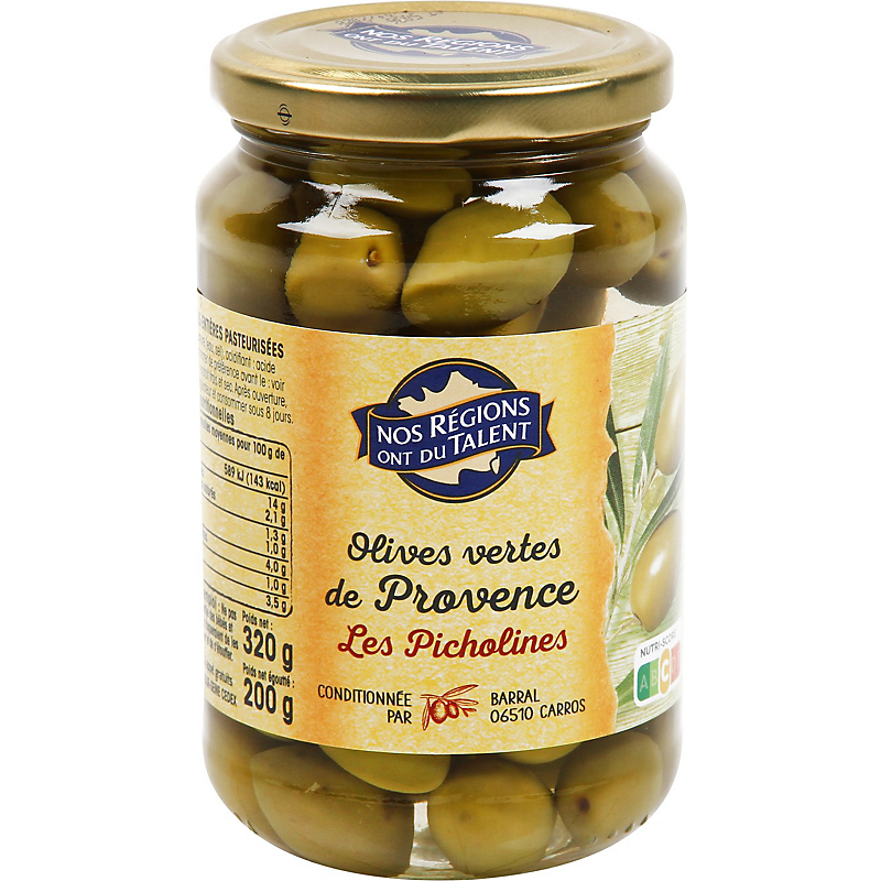 Olives vertes de Provence Picholines - 200 g - NOS REGIONS ONT DU TALENT