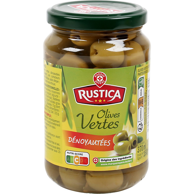Olives vertes dénoyautées pasteurisées RUSTICA