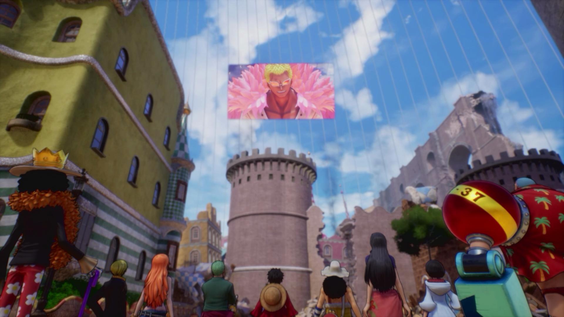 Contenu bonus : Contenu : - Jeu de base - Scénario supplémentaire : \"Souvenirs réunis\" - Ensemble de tenues de voyage - Tenue de voyage de Sniperking - Ensemble de tenues de la cité sur l'eau Contenu : - Jeu de base - Scénario supplémentaire : \"Souvenirs réunis\" - Ensemble de tenues de voyage - Tenue de voyage de Sniperking - Ensemble de tenues de la cité sur l'eau Le RPG commémoratif du 25e anniversaire de la saga \"ONE PIECE\", est enfin disponible sur Nintendo Switch, dans une édition premium qui inclut à la fois des scénarios et des costumes supplémentaires ! Le célèbre pirate Monkey D. Luffy, dit \"Chapeau de paille\", ainsi que son équipage, naviguent sur les mers du Nouveau Monde à la recherche d'une nouvelle île et de leur prochaine aventure. Par malheur, une tempête frappe et cause leur naufrage. Ils se retrouvent alors échoués sur une île tropicale à la végétation luxuriante, perpétuellement entourée de tempêtes.