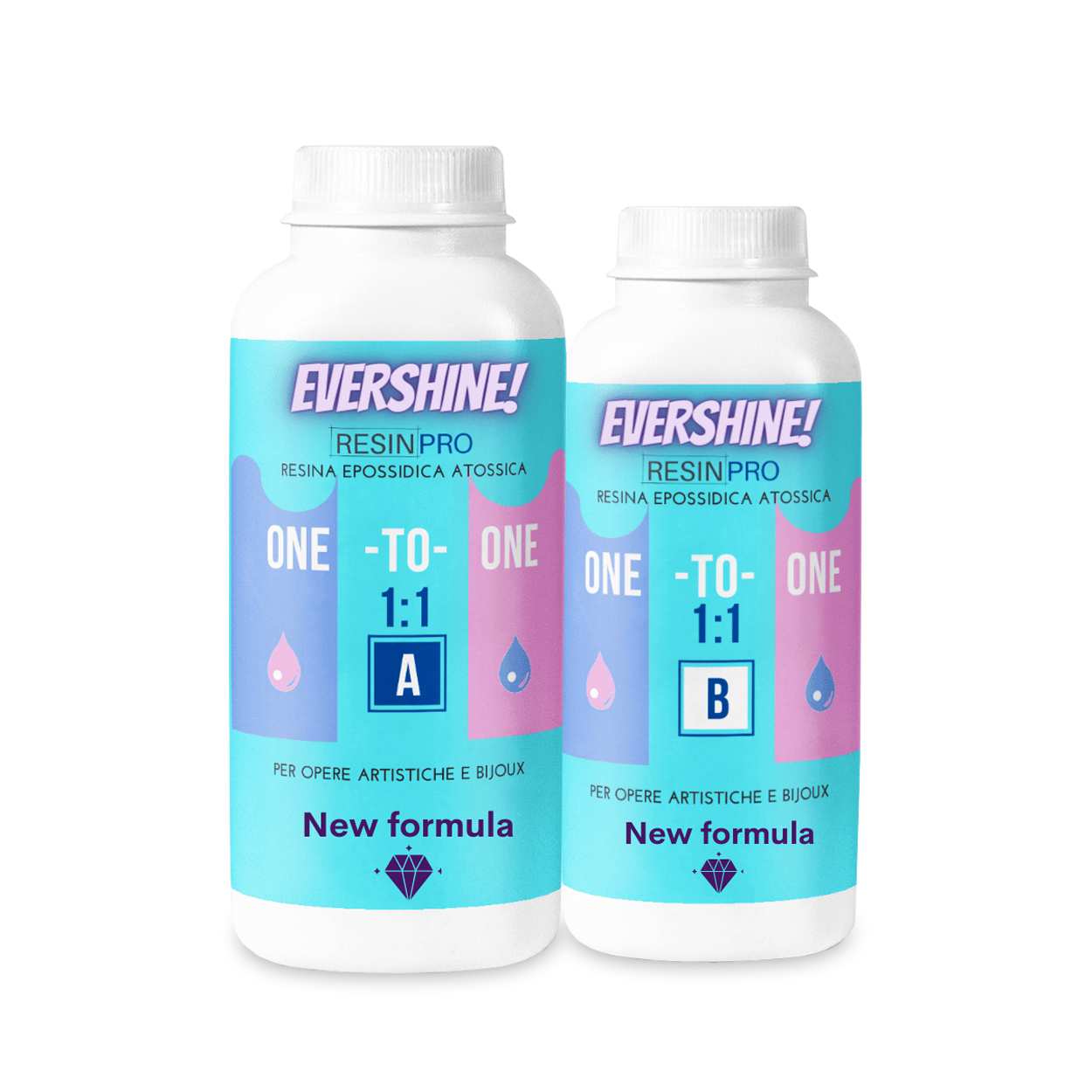 La résine “ONE-TO-ONE” Evershine a été formulée pour simplifier la création d’œuvres d’art et de bijoux. Avec un rapport de mélange 1 à 1 (en volume), elle offre une facilité d’utilisation sans stress. Elle est non toxique, transparente et conserve toujours sa brillance.