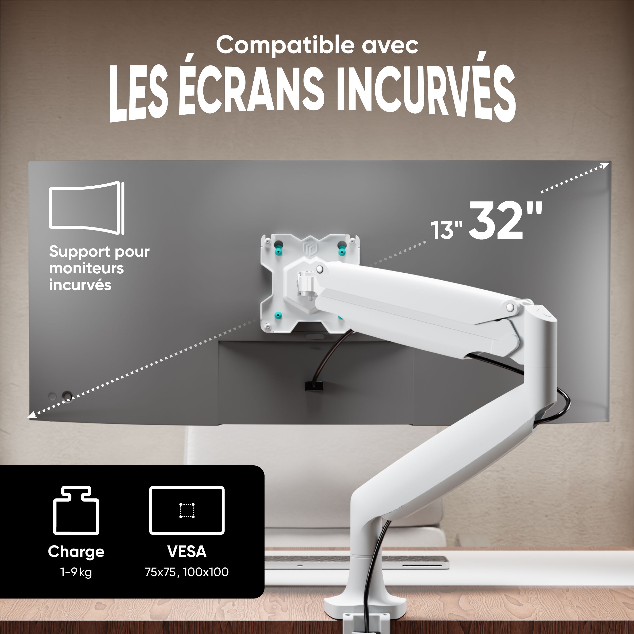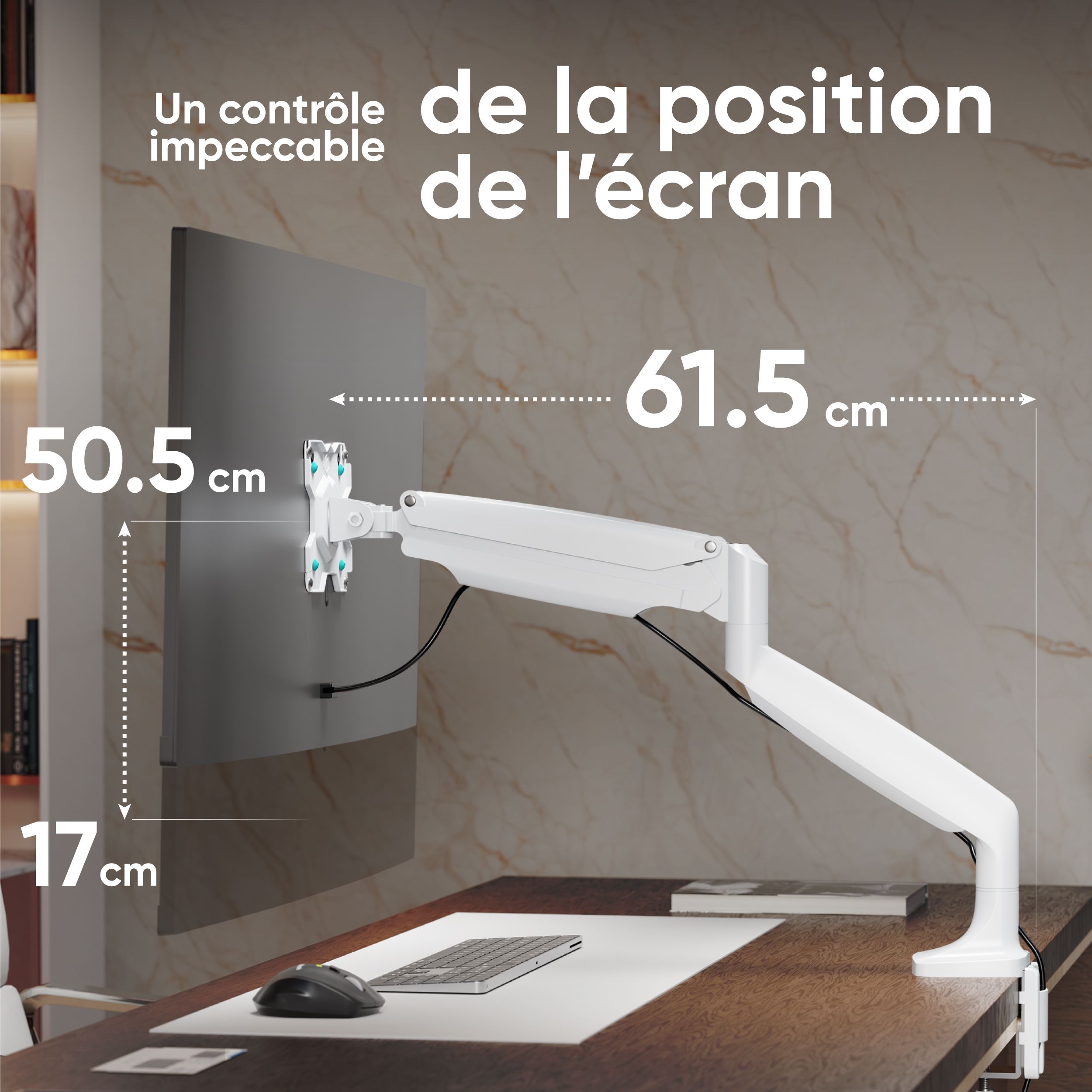 SUPPORT ECRAN BLANC | Support écran PC a des nombreuses options de réglage pour votre confort | Bras support écran ordinateur bien positionné gardera votre posture & vision | Bras articulé ecran PC aidera à concentrer sur le travail ou détendre après