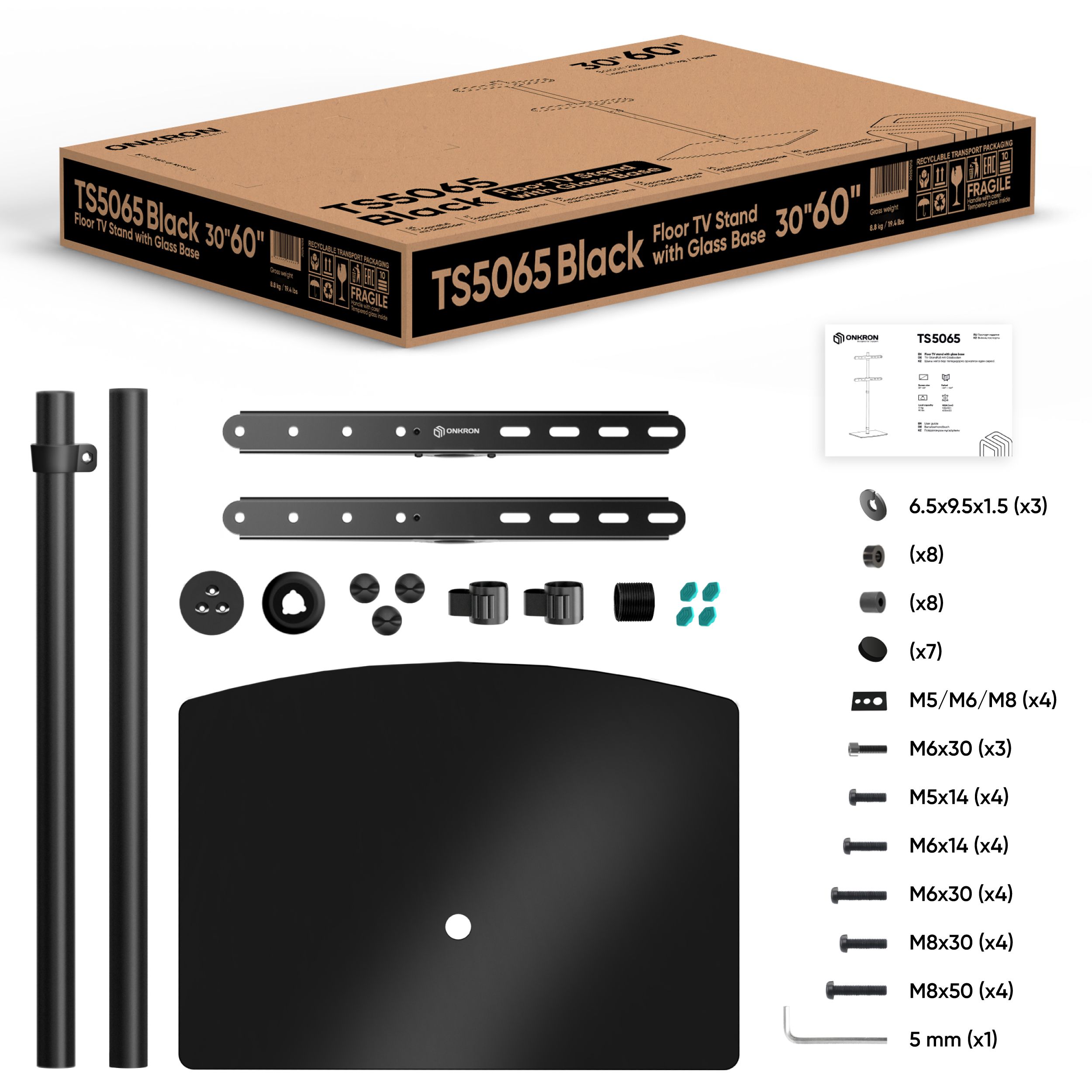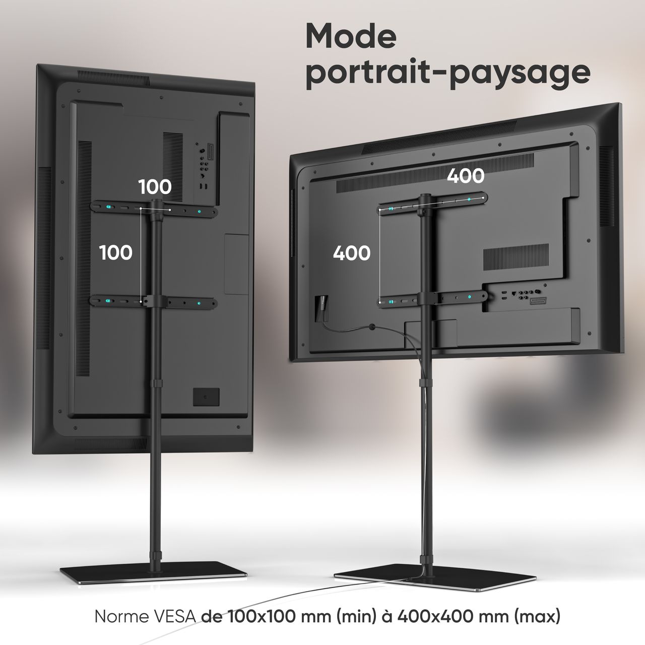 | Libellé | ONKRON Pied TV 30"-60", 41 kg max, VESA 100x100-400x400, Verre trempé, Hauteur Réglable, TS5065-B Noir |