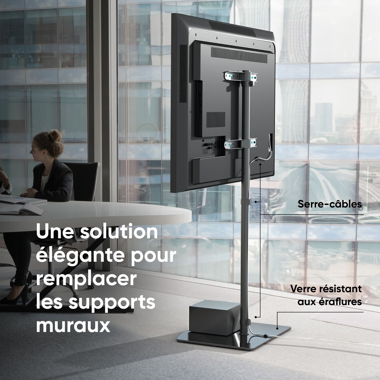 PIED MEUBLE TV VERRE | En utilisant le meuble TV avec support, vous pouvez libérer l'espace utilisable sous votre TV | Pied support TV a un système de gestion des câbles pour cacher les fils | En outre, vous pouvez acheter ONKRON A35-B - un organiseur pour y placer n'importe quelle petite chose