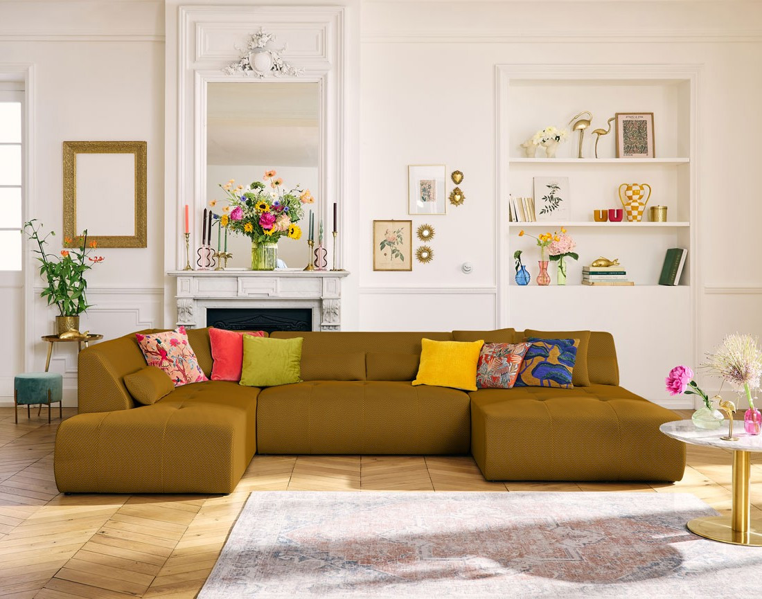 Caractéristiques techniques :Origine : EuropeGarantie : 2 ansType de canapé : Canapé panoramiqueType d'angle : Panoramique UPosition de l'angle : Angle gaucheNombre de places : 7Modulable : NonEquipement : 6 coussins décoratifs inclusMatière de la structure : Bois aggloméré et panneaux de particulesMatière du canapé : Tissu mailles 3DDétail des matières : Assise : Mouse polyuréthane 28kg/m3 – Dossier : Mousse polyuréthane de densité 21kg/m3 – Ressorts sinusoïdaux – Structure en bois et panneaux de particules – Revêtement en tissu mailles 3D – Pieds en plastiqueGarnissage de l'assise : Mousse polyuréthaneDensité de l'assise en kg/m3 : 28Garnissage du dossier : Mousse polyuréthaneDensité du dossier en kg/m3 : 21Suspensions d'assise : Ressorts sinusoïdauxCharge maximum : 600Essence de bois : HêtrePieds : plastique noirPoids : 112Style : ContemporainPrésentation de la marque : Chez Lisa Design nous savons que votre maison est l’endroit où vous créez des moments inoubliables. Nous vous proposons du mobilier alliant confort, fonctionnalité et esthétisme. Découvrez nos produits allant des meubles de séjour aux canapés.Collection : ONYXPrésentation de la collection : La collection Onyx présente des canapés panoramiques et un pouf aux différents revêtements et au design original. Grâce à ses dimensions généreuses, vous pourrez y accueillir vos proches pour des moments de convivialité.Montage : En quelques minutesNombre de colis : 3Dimensions du produitHauteur : 75 cmLargeur : 334 cmProfondeur : 198 cmHauteur d'assise : 42 cmLargeur d'assise de la partie principale : 132 cmLargeur d'assise de la petite méridienne : 110 cmLargeur d'assise de la grande méridienne : 90 cmLargeur d'assise totale : 312 cmProfondeur d'assise de la partie principale : 60 cmProfondeur d'assise de la petite méridienne : 133 cmProfondeur d'assise de la grande méridienne : 165 cmHauteur des pieds : 2 cmDimensions des colisNombre de colis : 3Colis 1 : L202xP95xH75 cm / 45 kgColis 2 : L169xP112xH75 cm / 36 kgColis 3 : L135xP98xH75 cm / 31 kgConseils d’entretienAspirez régulièrement avec un embout adapté. Nettoyer les salissures légères avec un chiffon humide. Pour les taches tenaces, nous vous recommandons de choisir des produits adaptés selon le textile, et de faire un test sur une petite partie non visible.Enfin, pour garantir la longévité de votre article, évitez de le placer en exposition directe au soleil, le tissu risquerait de se décolorer avec le temps.Bon à savoirLes couleurs des produits affichés peuvent varier en fonction de votre écran d'ordinateur ou mobile.Nous faisons de notre mieux pour représenter fidèlement les couleurs de nos produits dans nos images, mais ne pouvons garantir qu'elles soient exactement les mêmes que celles que vous voyez sur votre écran.N’hésitez pas à nous contacter, nous sommes là pour vous aider à prendre une décision d'achat éclairée.Canapé panoramique d'angle gauche Onyx : modernité et confort optimalLe canapé panoramique d'angle gauche 7 places Onyx de Lisa Design est idéal pour transformer votre espace de vie en un lieu de détente et de convivialité. Son assise rebondie garantit un confort optimal. Ce canapé est parfait pour des moments de relaxation en famille et les apéritifs entre amis.Fabriqué en Europe, le canapé Onyx assure une qualité de fabrication supérieure, respectant les normes les plus strictes.Un tissu innovant avec un design particulièrement tendanceLe canapé Onyx se distingue par son revêtement en tissu mailles 3D façon nid d'abeille, une matière innovante et très en vogue chez les designers. Ce tissu apporte une touche de modernité et de sophistication à votre intérieur. Disponible en douze coloris attrayants : beige, terracotta, vert, bleu, gris clair, gris foncé, orange, jaune, noir, rouge, vert olive et bleu canard, le canapé Onyx peut être personnalisé pour s'harmoniser parfaitement avec la déco de votre salon. En plus d'être design, le tissu nid d'abeille est durable et facile à entretenir. Optez pour le canapé panoramique d'angle gauche 7 places Onyx de Lisa Design et transformez votre salon en un espace synonyme de confort et de convivialité !