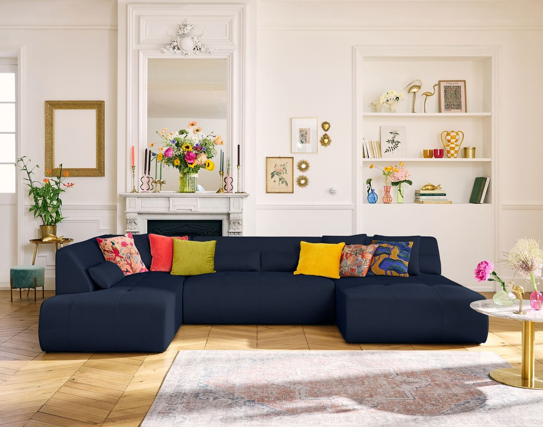 Caractéristiques techniques :Origine : EuropeGarantie : 2 ansType de canapé : Canapé panoramiqueType d'angle : Panoramique UPosition de l'angle : Angle gaucheNombre de places : 7Modulable : NonEquipement : 6 coussins décoratifs inclusMatière de la structure : Bois aggloméré et panneaux de particulesMatière du canapé : Tissu mailles 3DDétail des matières : Assise : Mouse polyuréthane 28kg/m3 – Dossier : Mousse polyuréthane de densité 21kg/m3 – Ressorts sinusoïdaux – Structure en bois et panneaux de particules – Revêtement en tissu mailles 3D – Pieds en plastiqueGarnissage de l'assise : Mousse polyuréthaneDensité de l'assise en kg/m3 : 28Garnissage du dossier : Mousse polyuréthaneDensité du dossier en kg/m3 : 21Suspensions d'assise : Ressorts sinusoïdauxCharge maximum : 600Essence de bois : HêtrePieds : plastique noirPoids : 112Style : ContemporainPrésentation de la marque : Chez Lisa Design nous savons que votre maison est l’endroit où vous créez des moments inoubliables. Nous vous proposons du mobilier alliant confort, fonctionnalité et esthétisme. Découvrez nos produits allant des meubles de séjour aux canapés.Collection : ONYXPrésentation de la collection : La collection Onyx présente des canapés panoramiques et un pouf aux différents revêtements et au design original. Grâce à ses dimensions généreuses, vous pourrez y accueillir vos proches pour des moments de convivialité.Montage : En quelques minutesNombre de colis : 3Dimensions du produitHauteur : 75 cmLargeur : 334 cmProfondeur : 198 cmHauteur d'assise : 42 cmLargeur d'assise de la partie principale : 132 cmLargeur d'assise de la petite méridienne : 110 cmLargeur d'assise de la grande méridienne : 90 cmLargeur d'assise totale : 312 cmProfondeur d'assise de la partie principale : 60 cmProfondeur d'assise de la petite méridienne : 133 cmProfondeur d'assise de la grande méridienne : 165 cmHauteur des pieds : 2 cmDimensions des colisNombre de colis : 3Colis 1 : L202xP95xH75 cm / 45 kgColis 2 : L169xP112xH75 cm / 36 kgColis 3 : L135xP98xH75 cm / 31 kgConseils d’entretienAspirez régulièrement avec un embout adapté. Nettoyer les salissures légères avec un chiffon humide. Pour les taches tenaces, nous vous recommandons de choisir des produits adaptés selon le textile, et de faire un test sur une petite partie non visible.Enfin, pour garantir la longévité de votre article, évitez de le placer en exposition directe au soleil, le tissu risquerait de se décolorer avec le temps.Bon à savoirLes couleurs des produits affichés peuvent varier en fonction de votre écran d'ordinateur ou mobile.Nous faisons de notre mieux pour représenter fidèlement les couleurs de nos produits dans nos images, mais ne pouvons garantir qu'elles soient exactement les mêmes que celles que vous voyez sur votre écran.N’hésitez pas à nous contacter, nous sommes là pour vous aider à prendre une décision d'achat éclairée.Canapé panoramique d'angle gauche Onyx : modernité et confort optimalLe canapé panoramique d'angle gauche 7 places Onyx de Lisa Design est idéal pour transformer votre espace de vie en un lieu de détente et de convivialité. Son assise rebondie garantit un confort optimal. Ce canapé est parfait pour des moments de relaxation en famille et les apéritifs entre amis.Fabriqué en Europe, le canapé Onyx assure une qualité de fabrication supérieure, respectant les normes les plus strictes.Un tissu innovant avec un design particulièrement tendanceLe canapé Onyx se distingue par son revêtement en tissu mailles 3D façon nid d'abeille, une matière innovante et très en vogue chez les designers. Ce tissu apporte une touche de modernité et de sophistication à votre intérieur. Disponible en douze coloris attrayants : beige, terracotta, vert, bleu, gris clair, gris foncé, orange, jaune, noir, rouge, vert olive et bleu canard, le canapé Onyx peut être personnalisé pour s'harmoniser parfaitement avec la déco de votre salon. En plus d'être design, le tissu nid d'abeille est durable et facile à entretenir. Optez pour le canapé panoramique d'angle gauche 7 places Onyx de Lisa Design et transformez votre salon en un espace synonyme de confort et de convivialité !