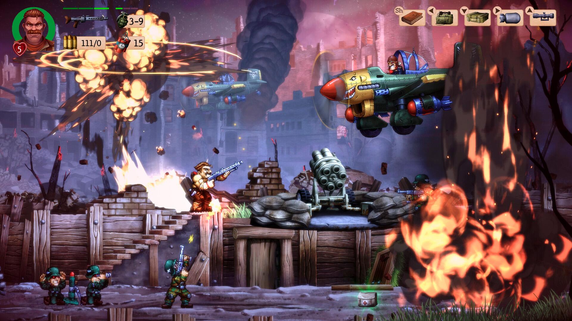 Dans les derniers jours de la Seconde Guerre mondiale, menez une mission suicide pour traquer les chefs ennemis, dérober leurs technologies expérimentales et récupérer les oeuvres d'art et les reliques. Un mélange d'action frénétique, de missions tactiques et d'aventure explosive de type run'n gun. Vous ne serez pas seul. L'escouade Dogs of War est prête à vous épauler. Que la mission commence ! Caractéristiques : - Fusion des genres : Un mélange explosif de run'n gun, de plateforme et d'aventure vidéo, avec des missions tactiques et exigeantes, le tout saupoudré d'un humour décalé ! - Missions uniques à forte rejouabilité : Découvrez 9 missions différentes, aux environnements, ennemis et stratégies variés. Explorez Berlin jusqu'à trouver le repaire ennemi. - Armes et véhicules historiques : Utilisez des armes authentiques et des prototypes avancés, détruisez les véhicules ennemis et prenez des positions stratégiques pour remporter la victoire.