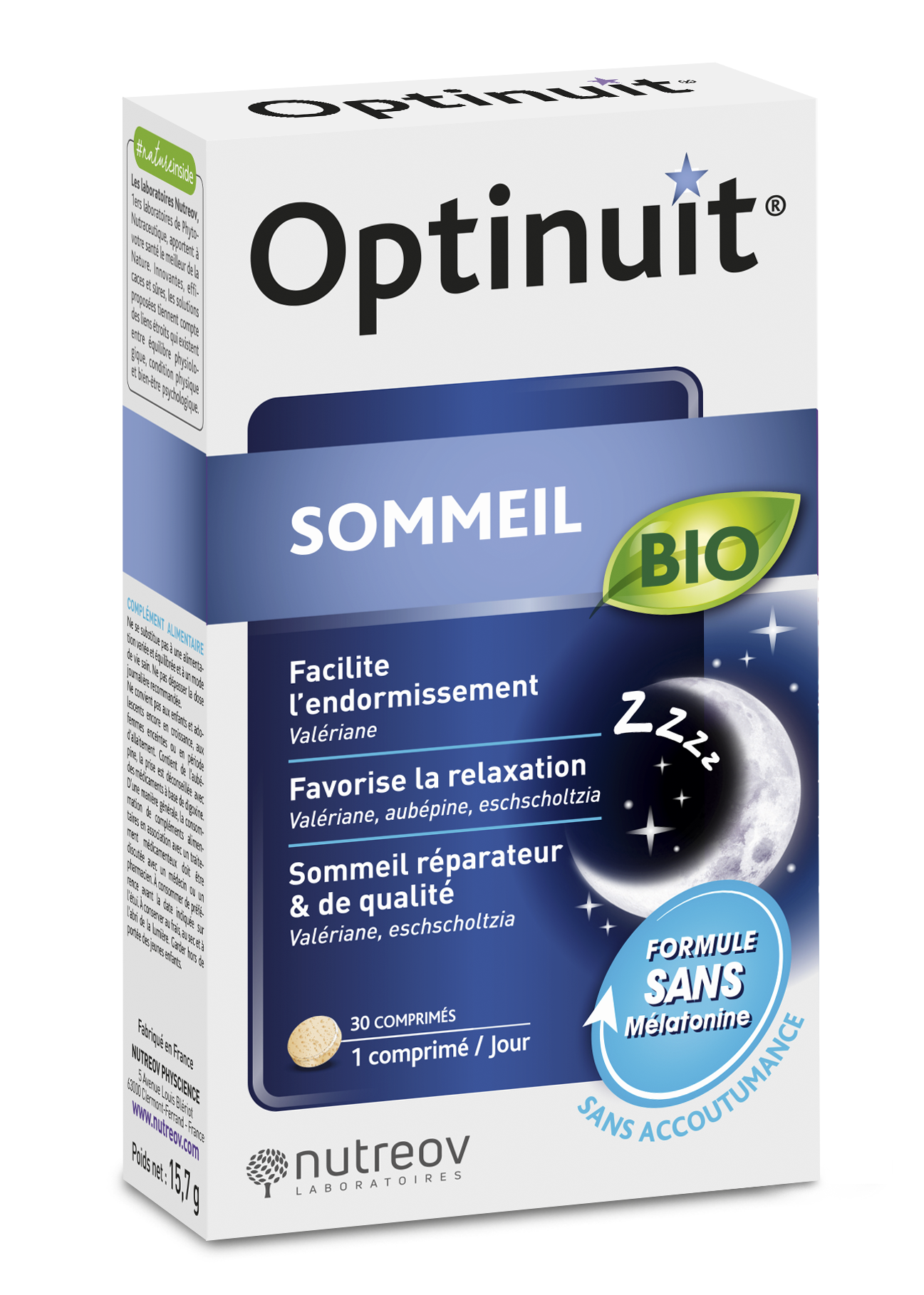 Pour être en forme, bénéficier d’un sommeil de qualité est essentiel ! Quand le sommeil est perturbé, on se sent fatigué, on a du mal à suivre le rythme, on se sent en décalage avec le monde qui nous entoure… Pour retrouver un sommeil réparateur et de qualité, la recherche des laboratoires Nutreov a mis au point Optinuit® BIO, une formule BIO unique et sans accoutumance composée d’actifs d’origine végétale aux multiples vertus.