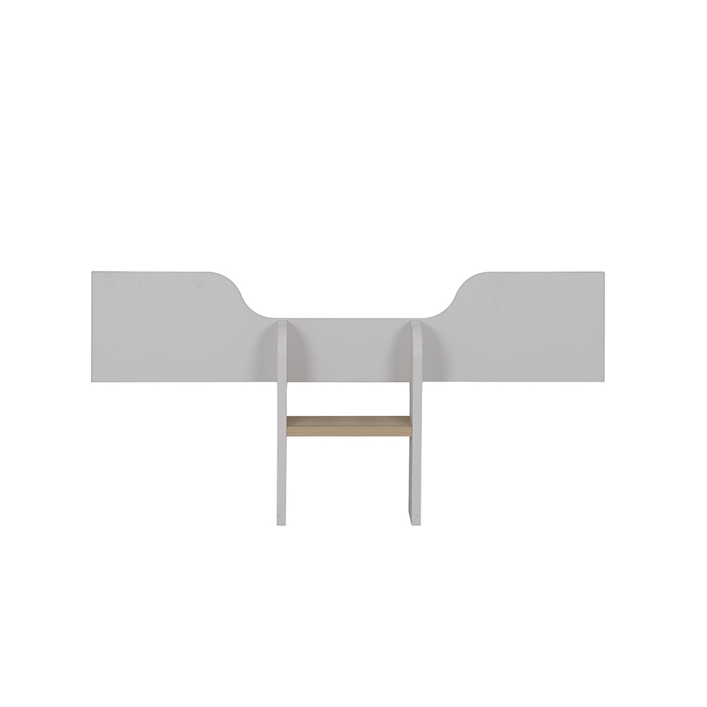 L'option 1 pan avec l'échelle Eliott vous permet de transformer le lit bébé évolutif de la même collection en lit enfant classique. Dès l'âge de 3 ans de votre enfant, vous pouvez opter pour la transformation du lit. Simple et facile, l'opération se fait en quelques minutes. Après avoir placé le sommier en position haute, il vous suffit de retirer une des barrières et de placer le pan de lit avec sa petite échelle. Vous prolongez ainsi la durée de vie du lit ce qui vous évite d'avoir à en racheter un autre. Autre avantage de cette option, vous pouvez surélever le lit et libérer un espace de rangement supplémentaire dans la chambre en glissant ainsi le caisson mobile de la même collection. Option 1 pan avec 1 petite échelle pour transformation du lit bébé Eliott en «Little bed» de 70x140cm. Dimensions : 140 x 30 x 2 cm. Dimensions de la petite échelle : 39 x 53 x 13 cm. Couleur : Gris clair sablé et chêne structuré. Composition : Finition en mélamine gris clair sablée et en panneaux de particules. Lit Elliot vendu séparément.