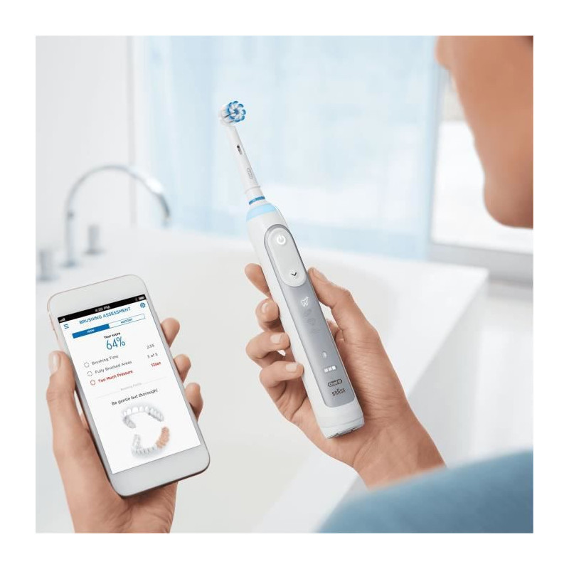La brosse a dents Oral-B Genius 8000 est un appareil intuitif, qui vous aide a vous brosser les dents comme votre dentiste le recommande. La technologie de détection de position unique vous aide a brosser toutes les zones de votre bouche la brossette ronde unique de Oral-B s'occupe du reste.