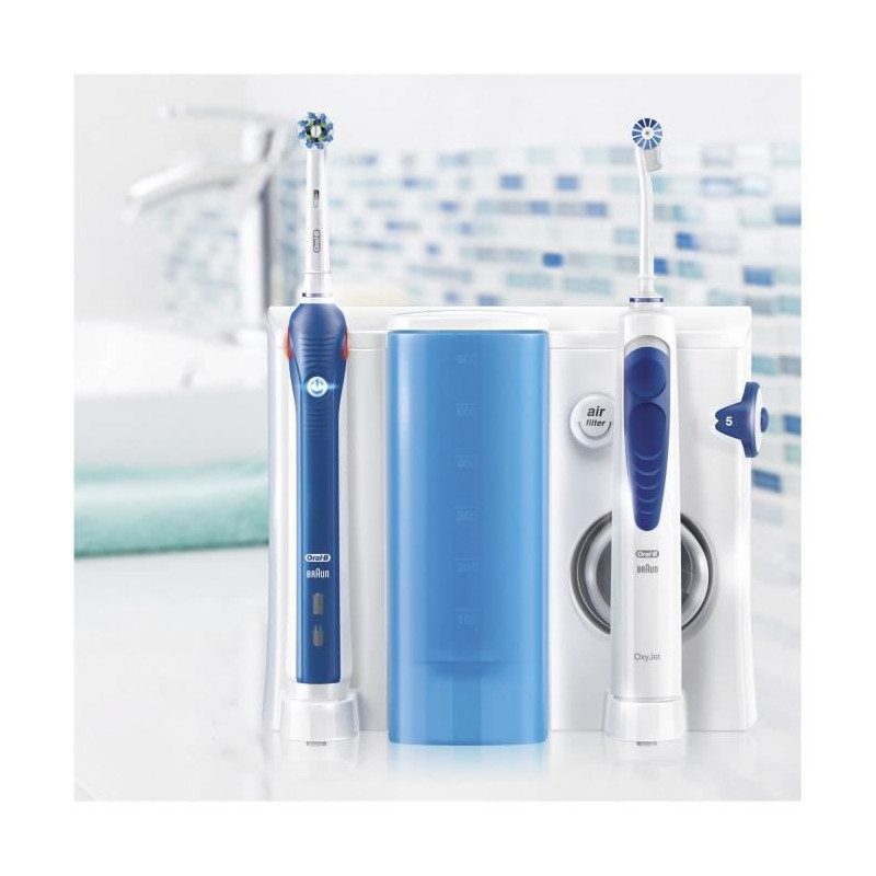 oc205352 - oral-b combiné dentaire complet - Oral-b combiné dentaire complet PRO 2000 + OXYJET Braun OC205352 composé d'un hydropulseur Oxyjet, une brosse à dents électrique, quatre canules Oxyjet et trois brossettes. La marque de brosses à dents électriques la plus utilisée par les dentistes eux-mêmes dans le monde.Arborez des gencives plus saines et un sourire plus blanc et éclatant avec le combiné dentaire Oral-B Pro 2000 + Hydropulseur Oxyjet. Alliant l'action de nettoyage en profondeur de la brosse à dents Oral-B PRO 2000 au pouvoir nettoyant et massant de l'hydropulseur Oral-B Oxyjet, ce combiné dentaire offre à vos gencives et à vos dents tous les soins dont elles ont besoin à l'aide d'un seul appareil.Technologie de microbullesPour faire barrage au développement de la plaque bactérienne.Nettoyage dous pour des gencives sainesAvec l'hydropulseur Oxyjet.Protégez vos gencivesGrâce au triple contrôle de pression.Un brossage personnaliséAvec 2 modes de brossage. - Technologie 3D.Brossettes : CrossAction, Sensitive Clean, Power tip.Minuteur professionnel : 4 x 30 secondes.Indicateur de pression lumineux.Indicateur de charge et avertisseur de faible niveau de batterie.Hydropulseur Oxyjet.Brosse à dents électrique.4 canules Oxyjet.3 brossettes.Contrôle de la pression d'eau.Filtre à air.Réservoir transparent de 600 ml.Base de chargement et rangement de canules.