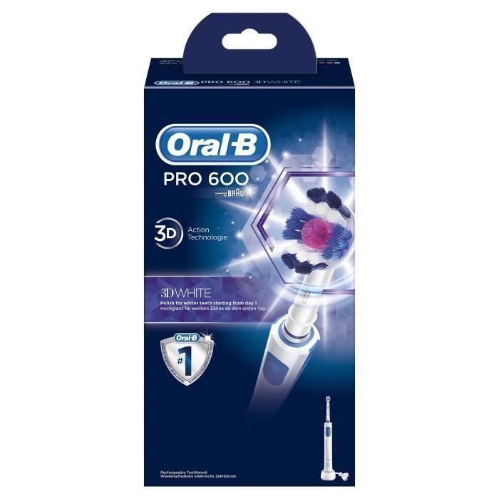 | Libellé | Oral-B PRO 600 3D Brosse a dents electrique par BRAUN - Blanc |