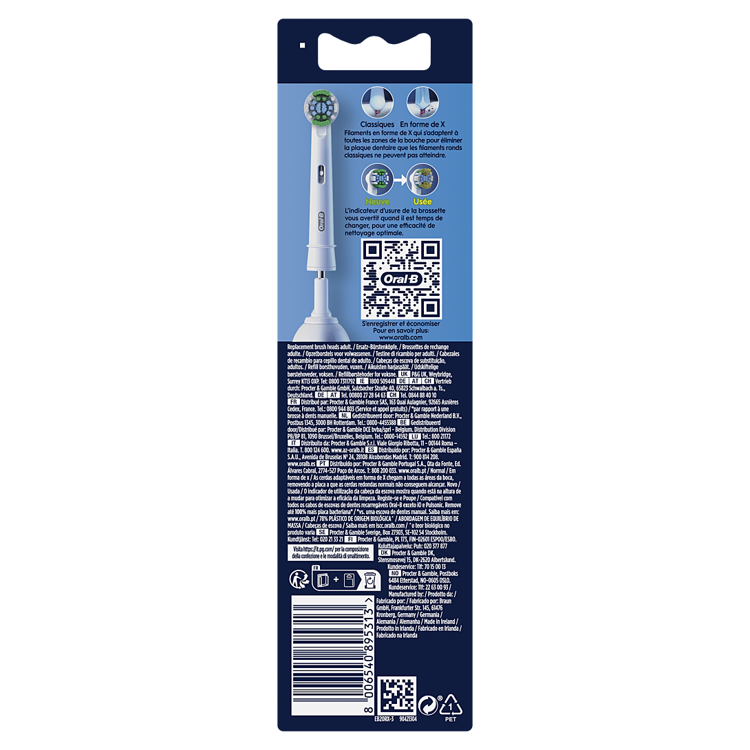 Les filaments de la brossette Oral-B Pro Precision Clean éliminent la plaque dentaire pour un meilleur nettoyage dent par dent qu'avec une brosse à dents manuelle classique. Les brossettes Oral-B authentiques sont dotées de nouveaux filaments en forme de X qui nettoient les zones inaccessibles aux filaments arrondis. Les filaments passent du vert au jaune vous rappelant de changer de brossette pour conserver une efficacité de nettoyage optimale. Compatibilité garantie avec toutes les brosses à dents électriques rechargeables Oral-B à l'exception des brosses à dents Pulsonic et iO.