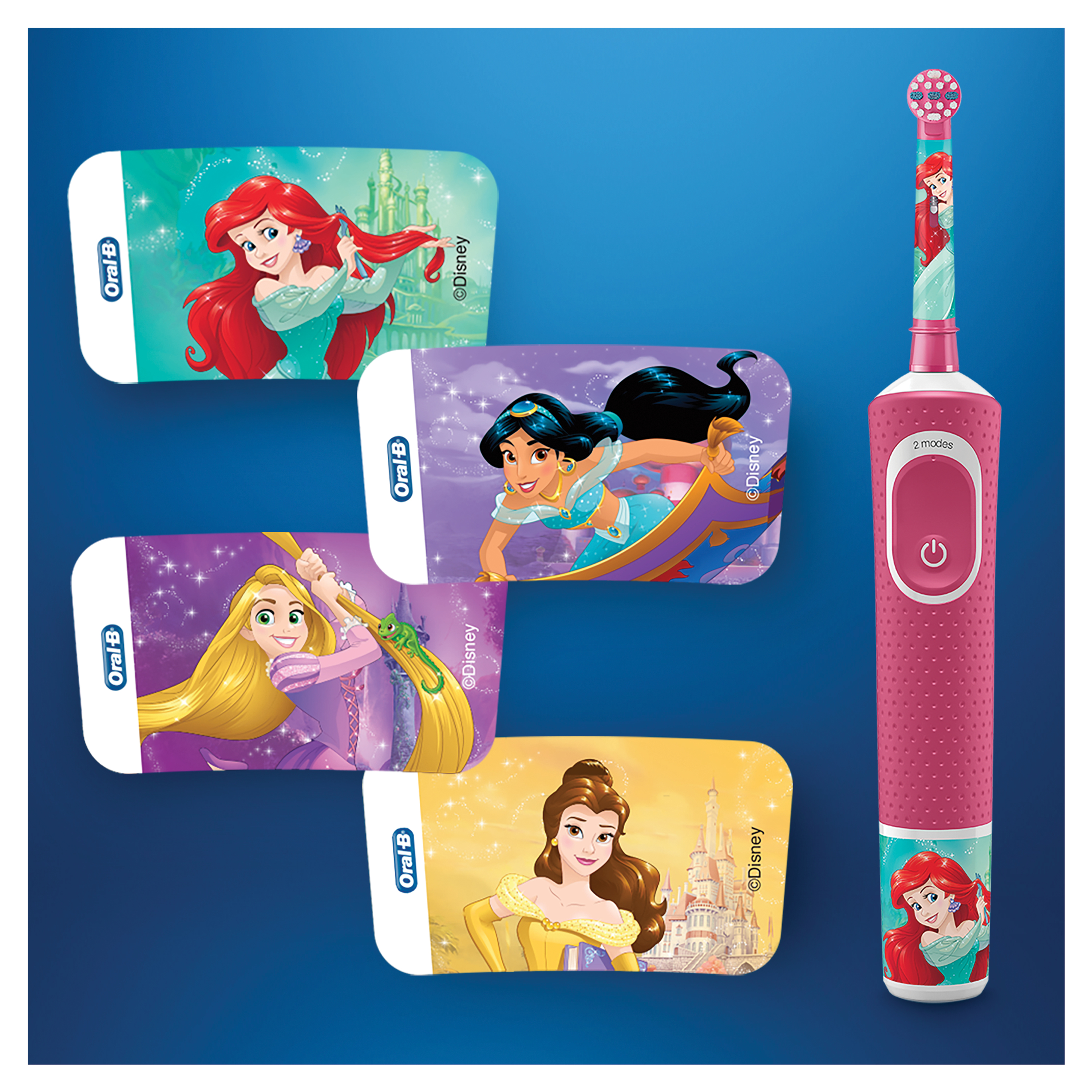 Oral-B Kids Disney Princesses. Utilité: Enfant, Type de brosse à dents: Brosse à dents rotative, Modes de brossage de dents: Soin quotidien. Source d'alimentation: Batterie, Type de batterie: Batterie intégré. Poids: 240,86 g, Largeur du colis: 110 mm, Profondeur du colis: 52 mm. Nombre de poignées fournis: 1 pièce(s)