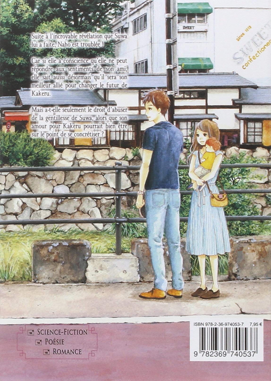 Suite à l'incroyable révélation que Suwa lui a faite, Naho est troublée ! Car si elle a conscience qu'elle ne peut répondre aux sentiments de son ami, elle sait aussi désormais qu'il sera son meilleur allié pour changer le futur de Kakeru. Mais a-t-elle seulement le droit d'abuser de la gentillesse de Suwa, alors que son amour pour Kakeru pourrait bien être sur le point de se concrétiser ?