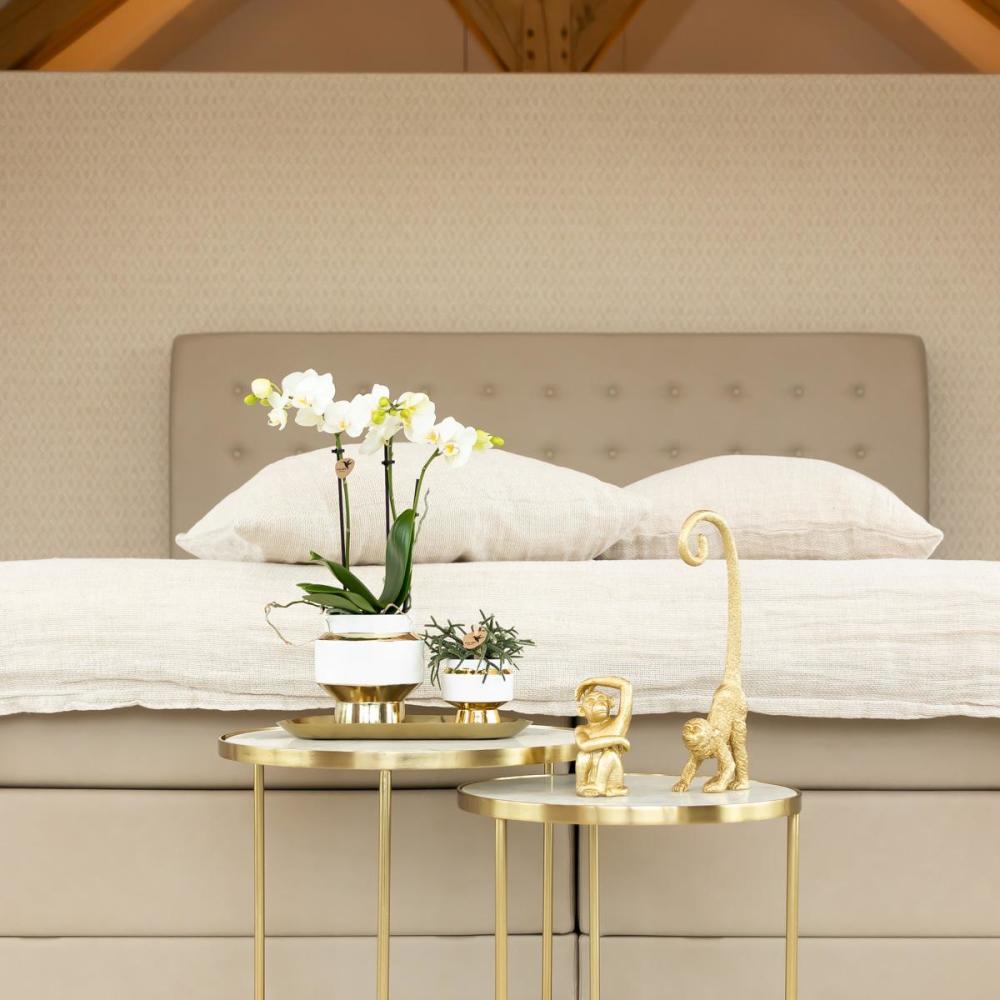 Orchidées Colibri | Orchidée Phalaenopsis blanche - Amabilis + Pot décoratif Le Chic or - taille du pot 9