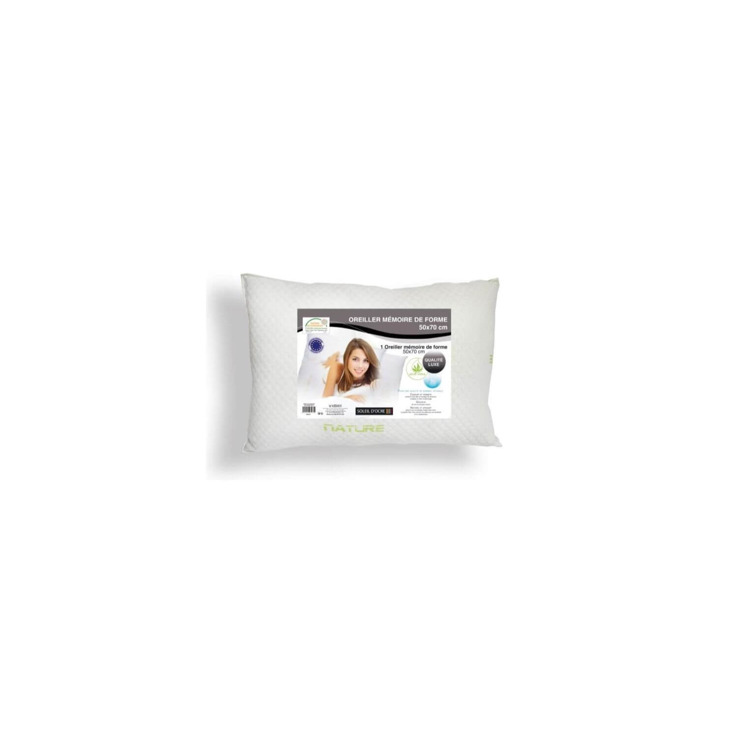 Oreiller mémoire de forme 50 x 70 anti-acariens traitement Aloe Vera