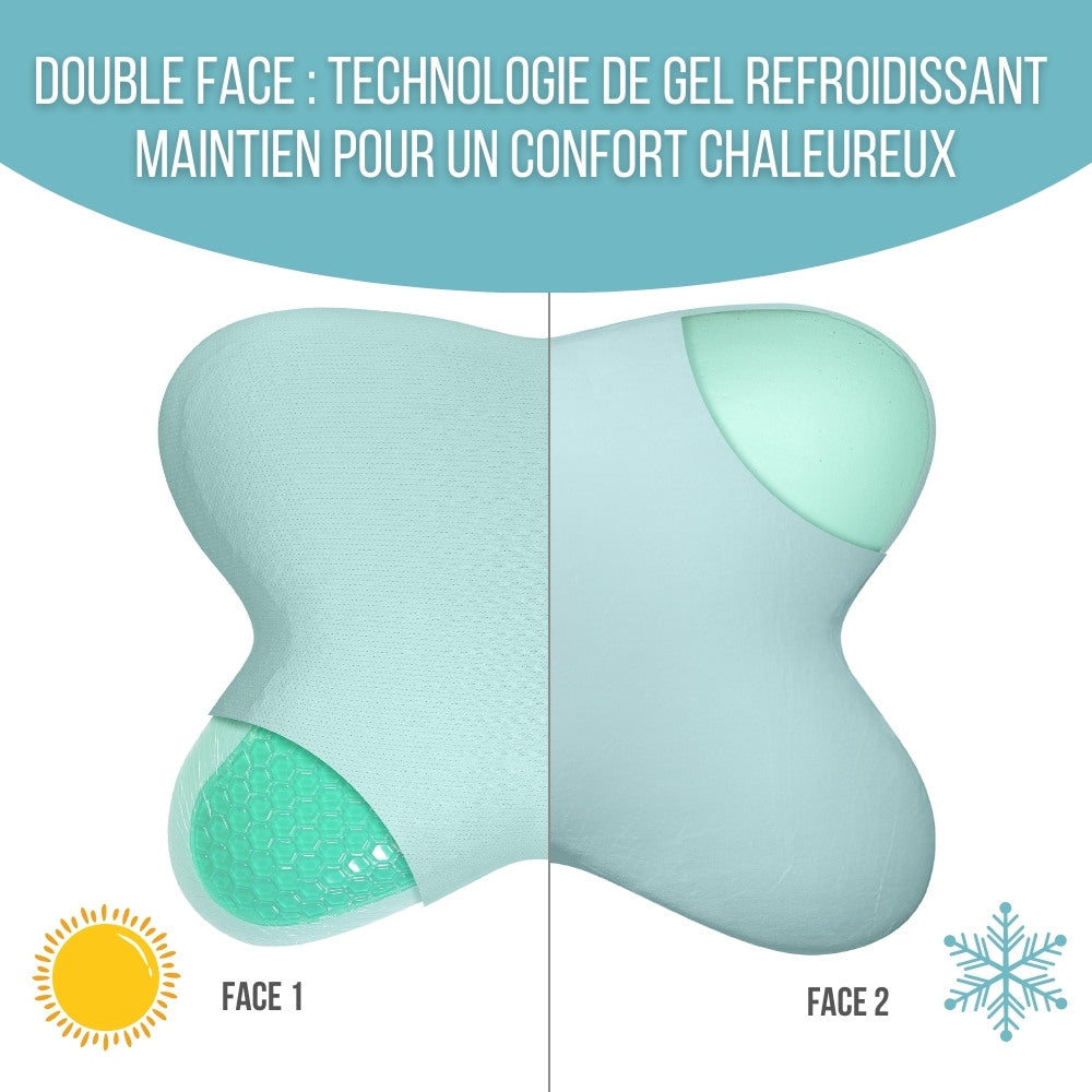 Oreiller à Mémoire de forme Papillon Double face Rafraichissant avec GEL, Côtés FROID-CHAUD, Infusion de