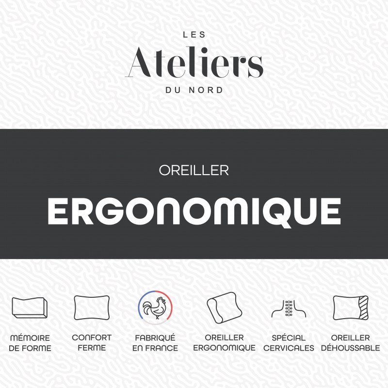 Grâce à son garnissage en bloc de mousse viscoélastique mémoire de forme, l'oreiller ergonomique Atelier du Nord s'adapte parfaitement à votre position pendant la nuit. Épousant bien les courbes de la tête, il vous offre un confort ferme. Cet oreiller idéal pour dormir sur le dos et sur le côté vous contribue à prévenir les douleurs au niveau des cervicales et du cou. Fabriqué en France, l'oreiller ergonomique Atelier du Nord est équipé d'une enveloppe de protection amovible pour faciliter son entretien.