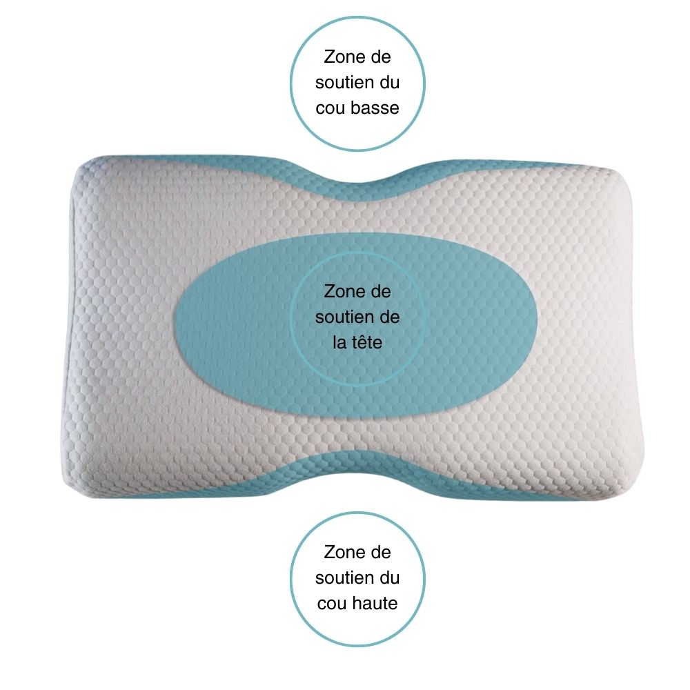 Découvrez l'Oreiller DUO, conçu pour offrir un positionnement optimal de la tête et un soulagement cervical, procurant un sommeil réparateur grâce à sa forme ergonomique bilatérale offrant deux hauteurs différentes.