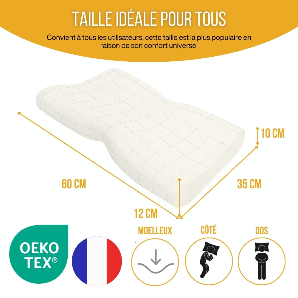 Libellé Oreiller Ergonomique et Cervical DUO Ajustable (10 ou 12 cm) 61X37 cm