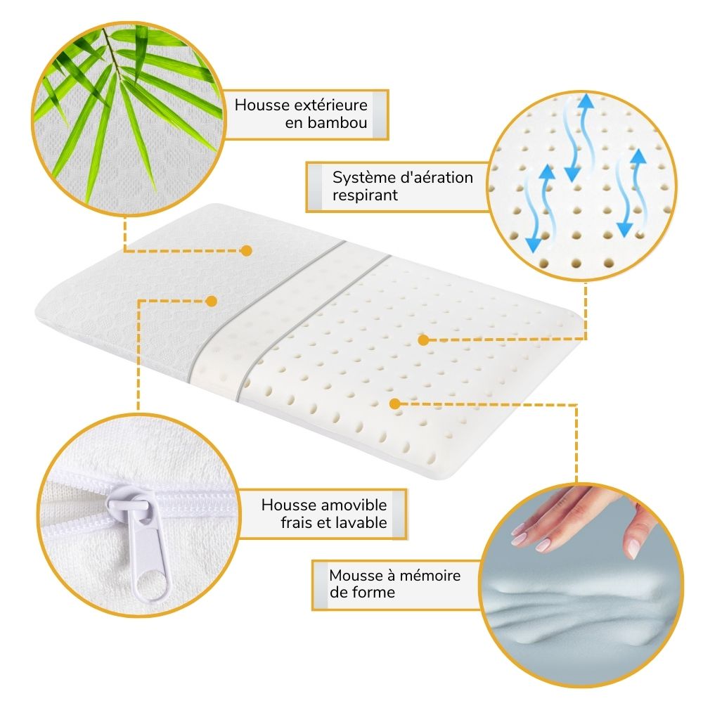 Profitez d'un confort inégalé, d'un soutien ergonomique et d'un sommeil plus propre et plus vert avec l'Oreiller Extra Plat d'Inphysio, où le luxe rencontre la durabilité.