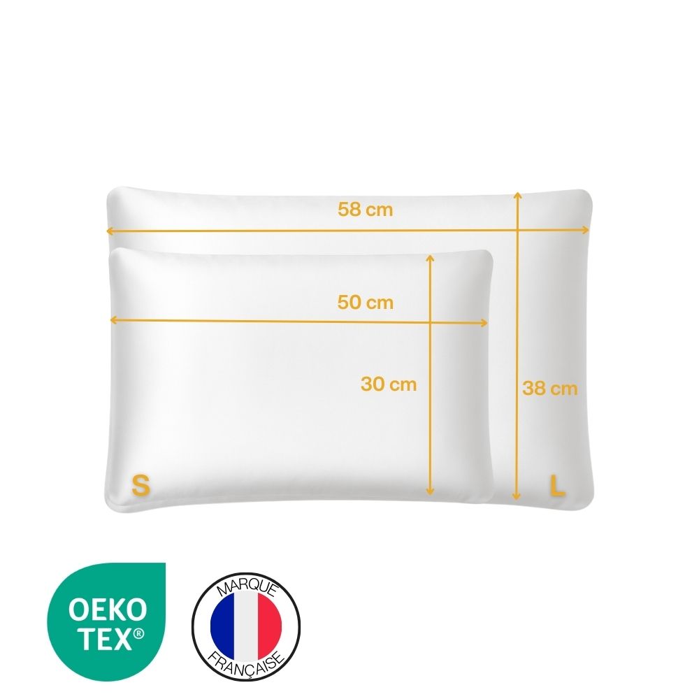 Cet oreiller, avec sa certification STANDARD 100 par OEKO-TEX®, garantit un produit sans substances nocives, convenant à tous les types de peau et offrant une tranquillité d'esprit pour ceux qui ont des allergies ou des sensibilités.