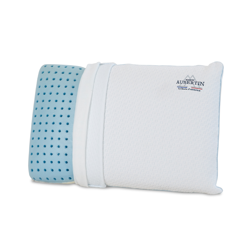 Cet oreiller Mémoire de forme viscoélastique de la marque prémium Maison Aubertin est destiné à ceux qui cherchent un confort extrême et douillet. Face été. face hiver. vous dormirez toute l'année sur vos deux oreilles. La technologie Gel+ offrira à vos nuits une fraîcheur tempérée. Fini les problèmes de transpiration.