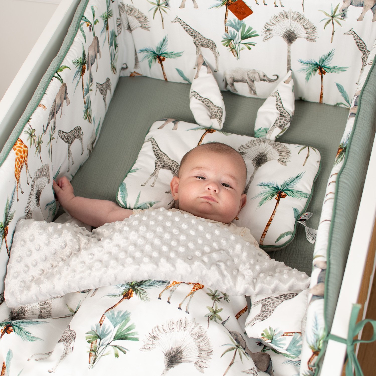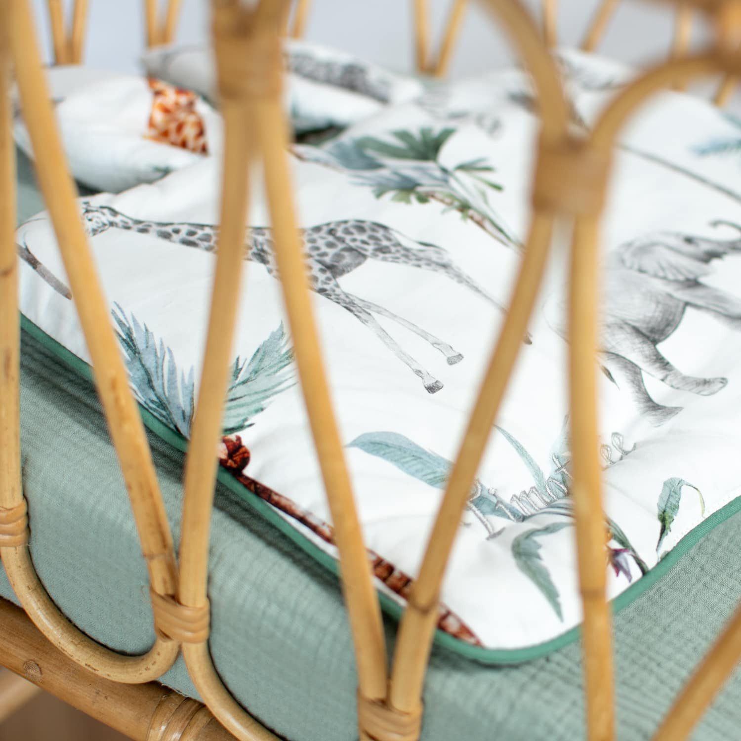 Envie de compléter votre achat avec la Collection Safari ?Découvrez également notre gamme complète de textile de chambre, tels que le linge de lit, les draps, les tours de lit, les gigoteuses et les couvertures, tous de la même collection. Notre tissu est certifié et Reach, offrant ainsi un environnement sain et sûr pour votre bébé. Fabriqué avec passion en France, notre garnissage en fibres creuses siliconées anti-allergique assure un confort optimal pour votre tout-petit.