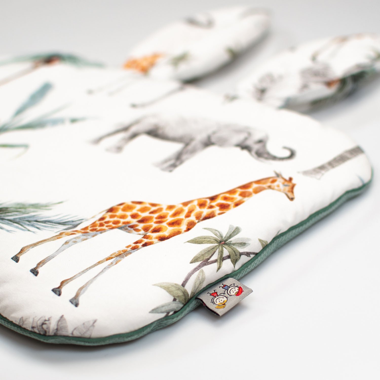 Coussin plat réversible lapin, Safari - Praticité, multi-usage et fabrication française.