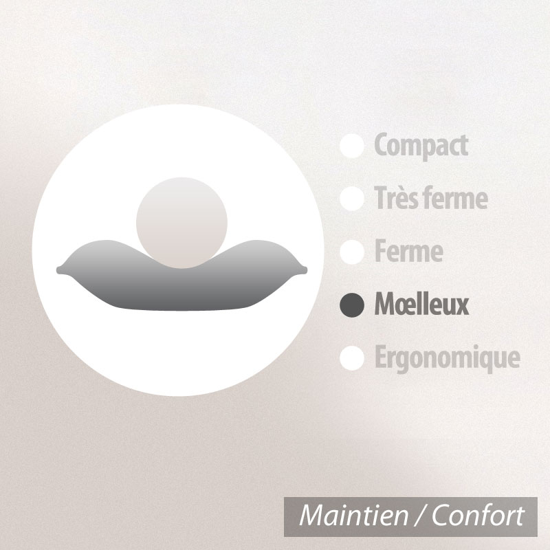 Cet oreiller possède un garnissage en plumes avec un confort placé dans la catégorie "moelleux".